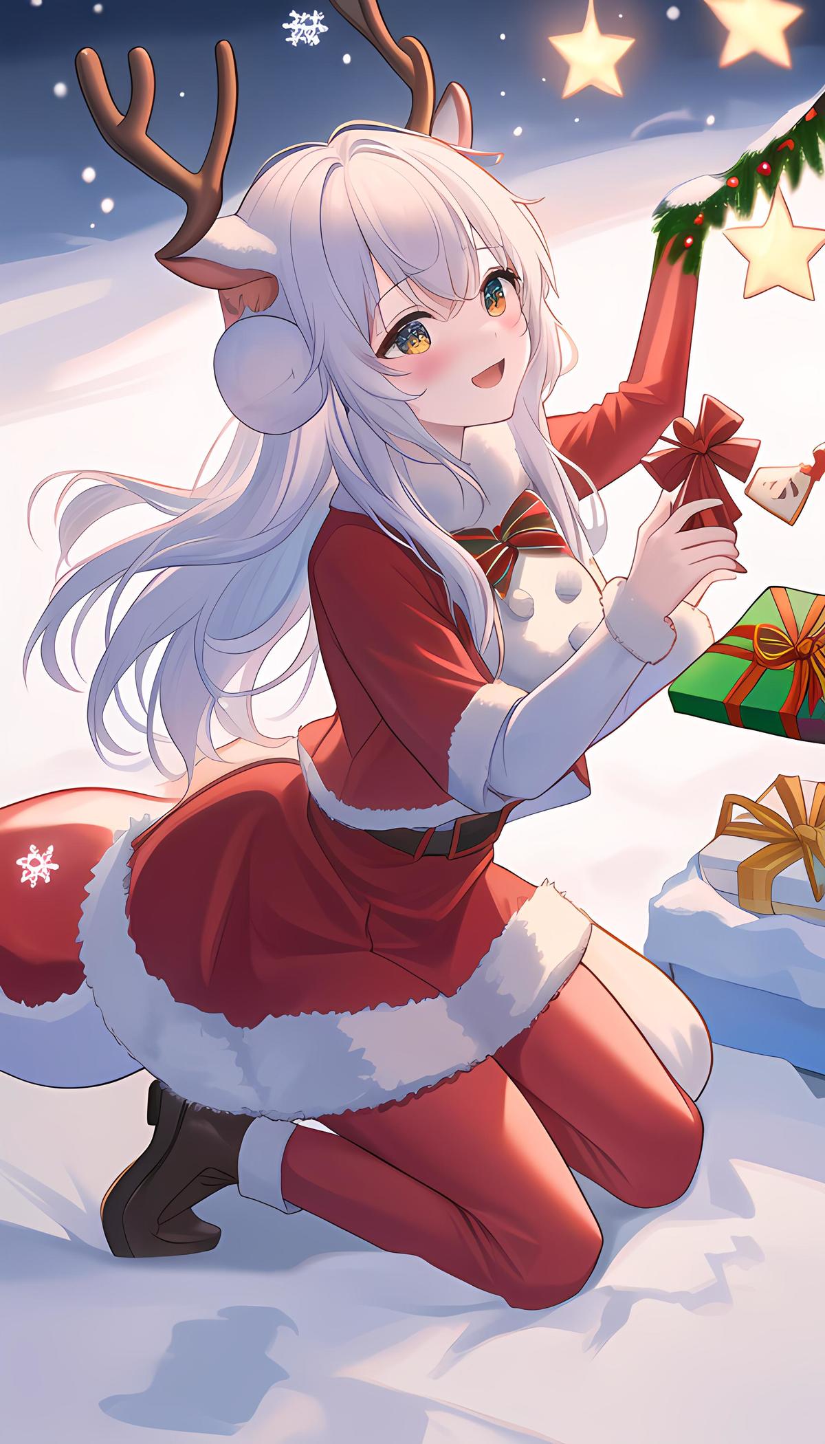 圣诞气氛、圣诞鹿、雪花、礼物、可爱、开心、4K高清、更多创意