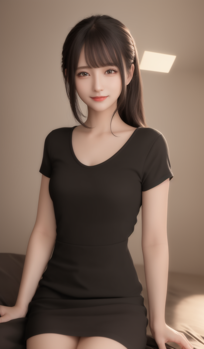 质量最好,插图超精细,美丽的黑色大眼睛,和蔼可亲的笑容,非常精致的光线,精细的发光,非常精细的8K CG壁纸,穿着短袖休闲衣服的女生,彩色的背景
