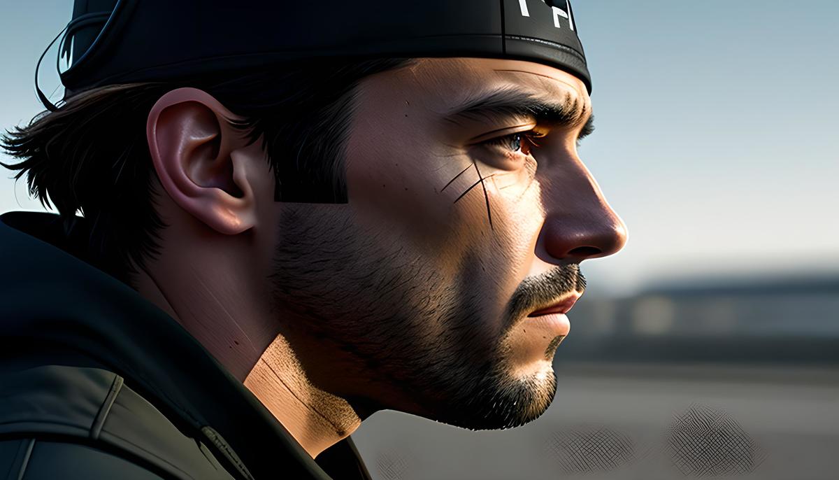 一名缉毒警察,目光坚毅,满脸伤痕,看向远方,后面有一个人拿一把手枪对着这名缉毒警察,简单的背景,丰富的细节