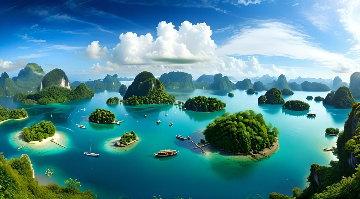 几个岛屿,湖面,船只