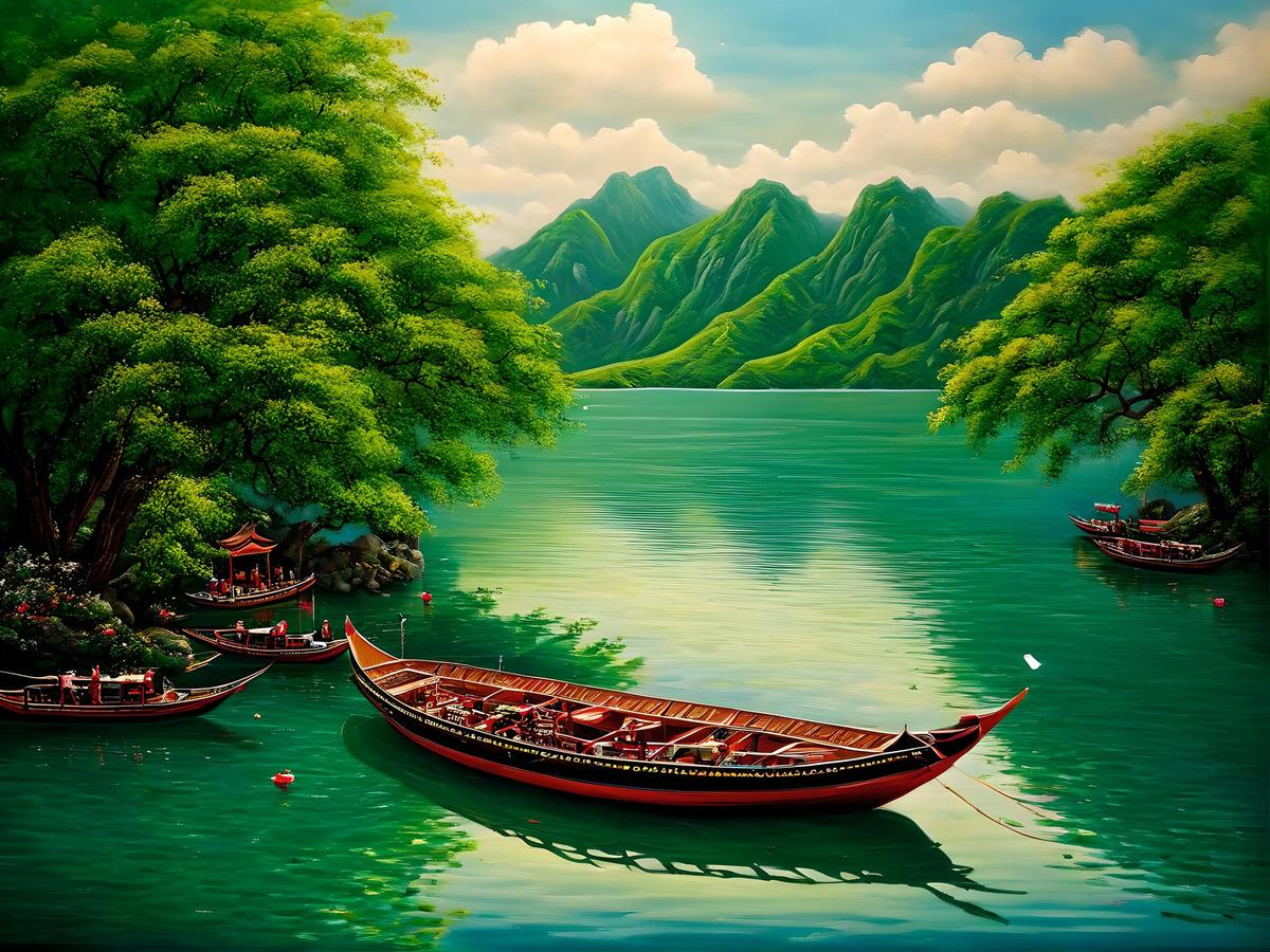 船上的中式婚礼,湖,小岛