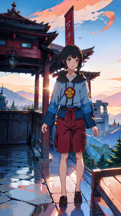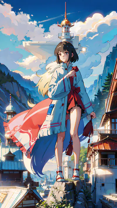一个小姑娘喜欢穿着好看的时装去旅行