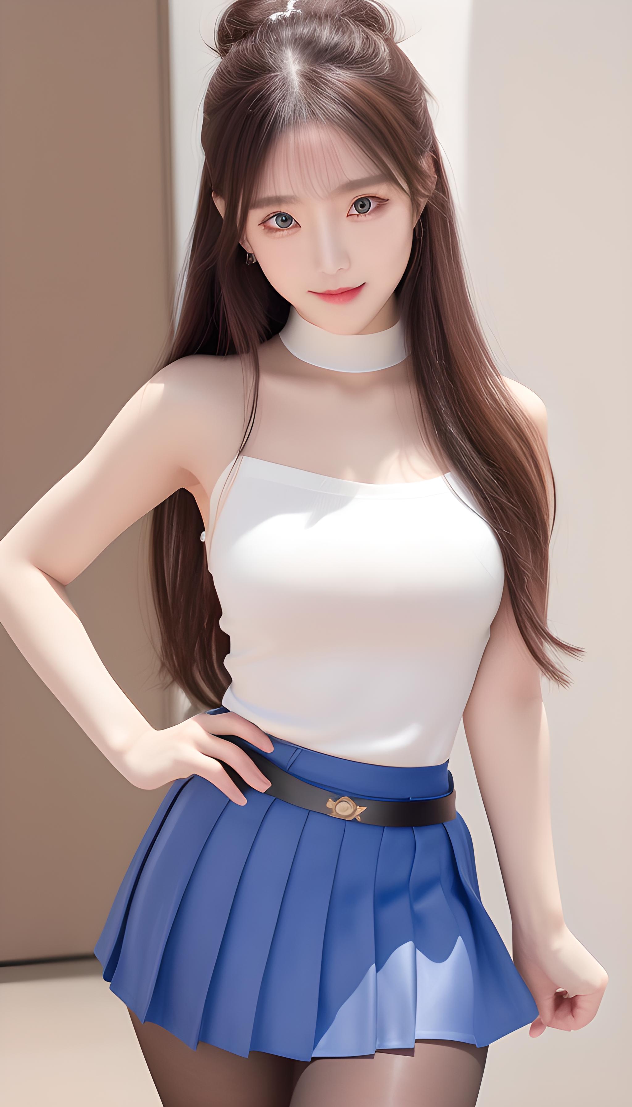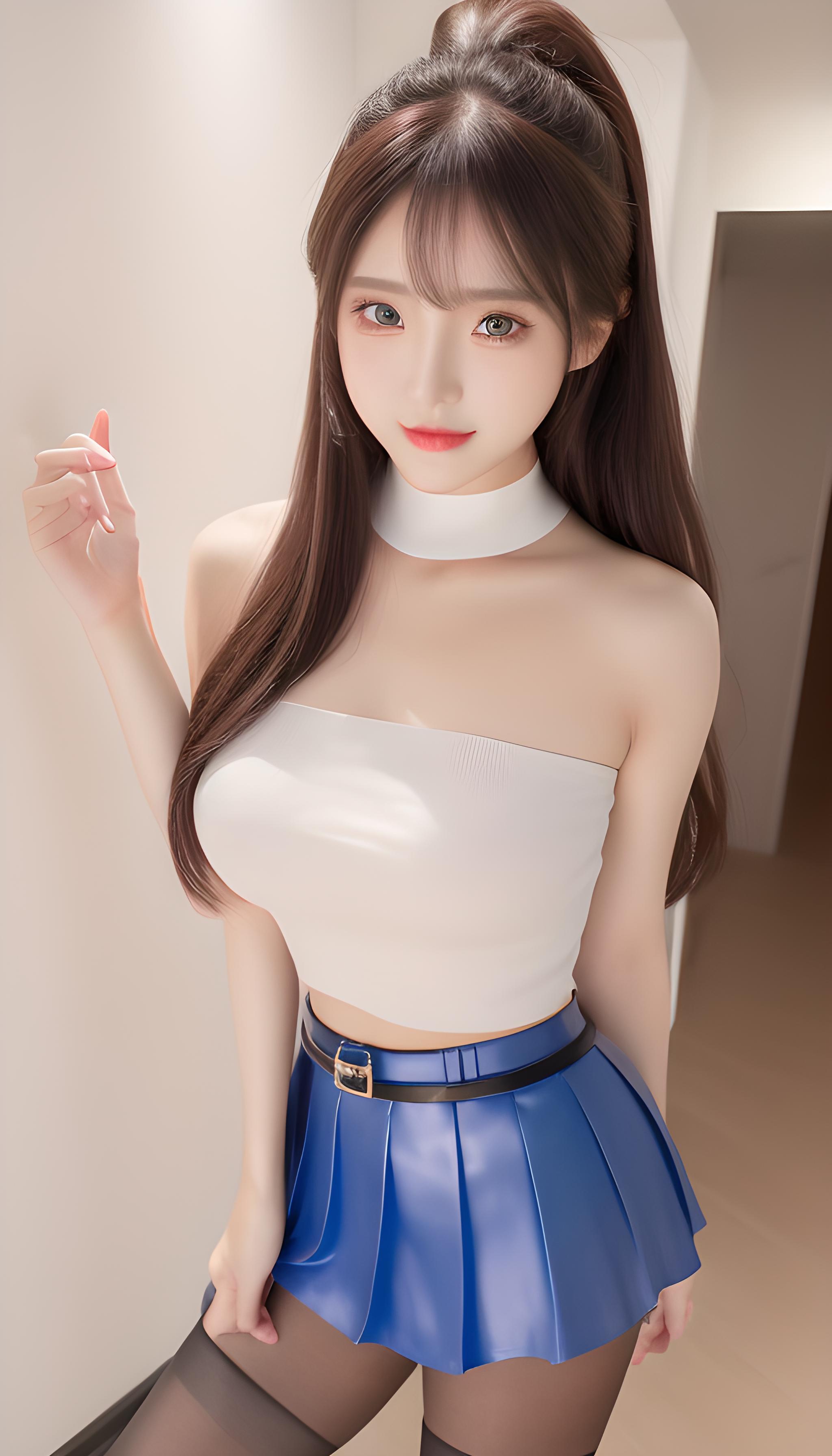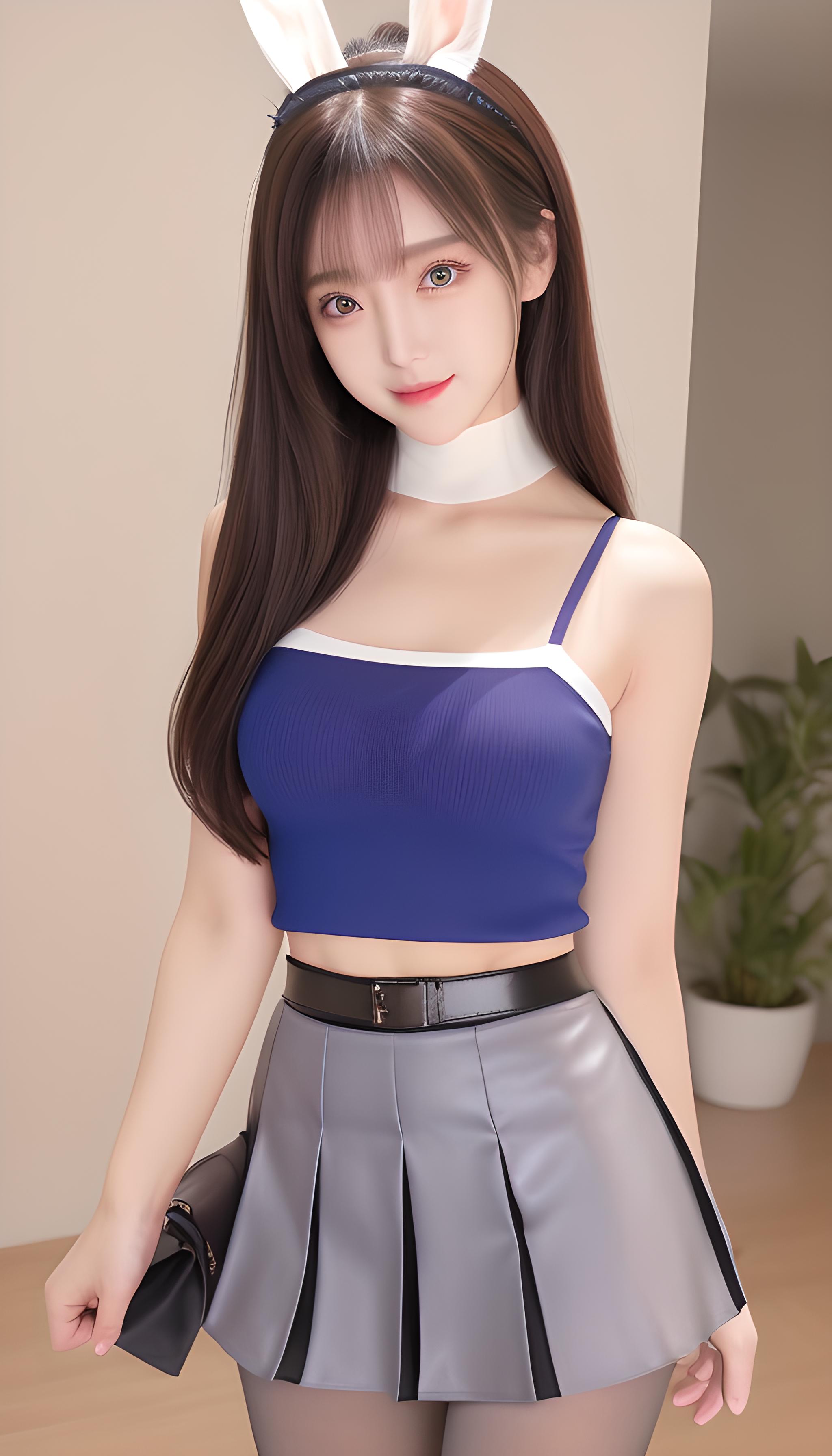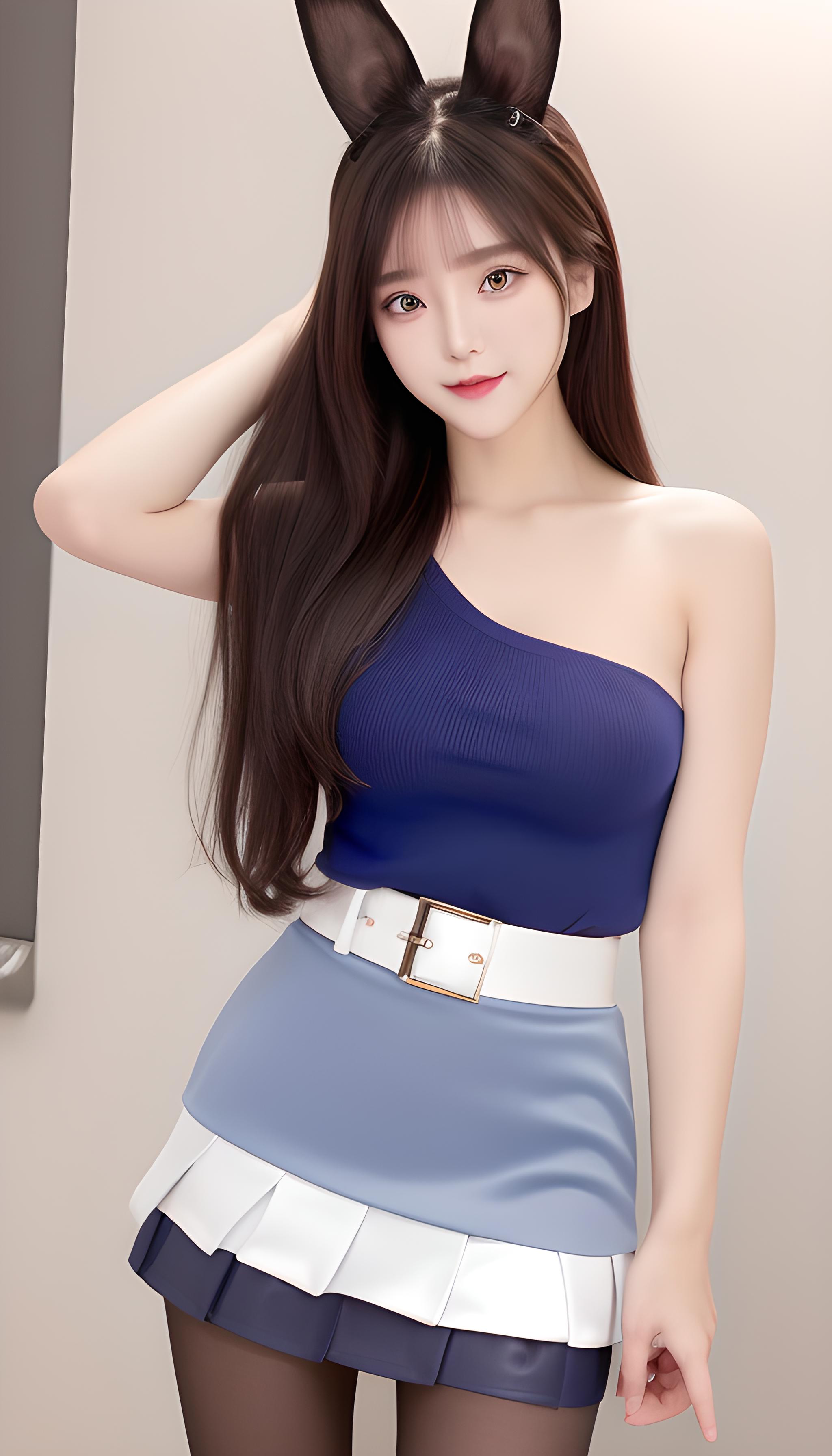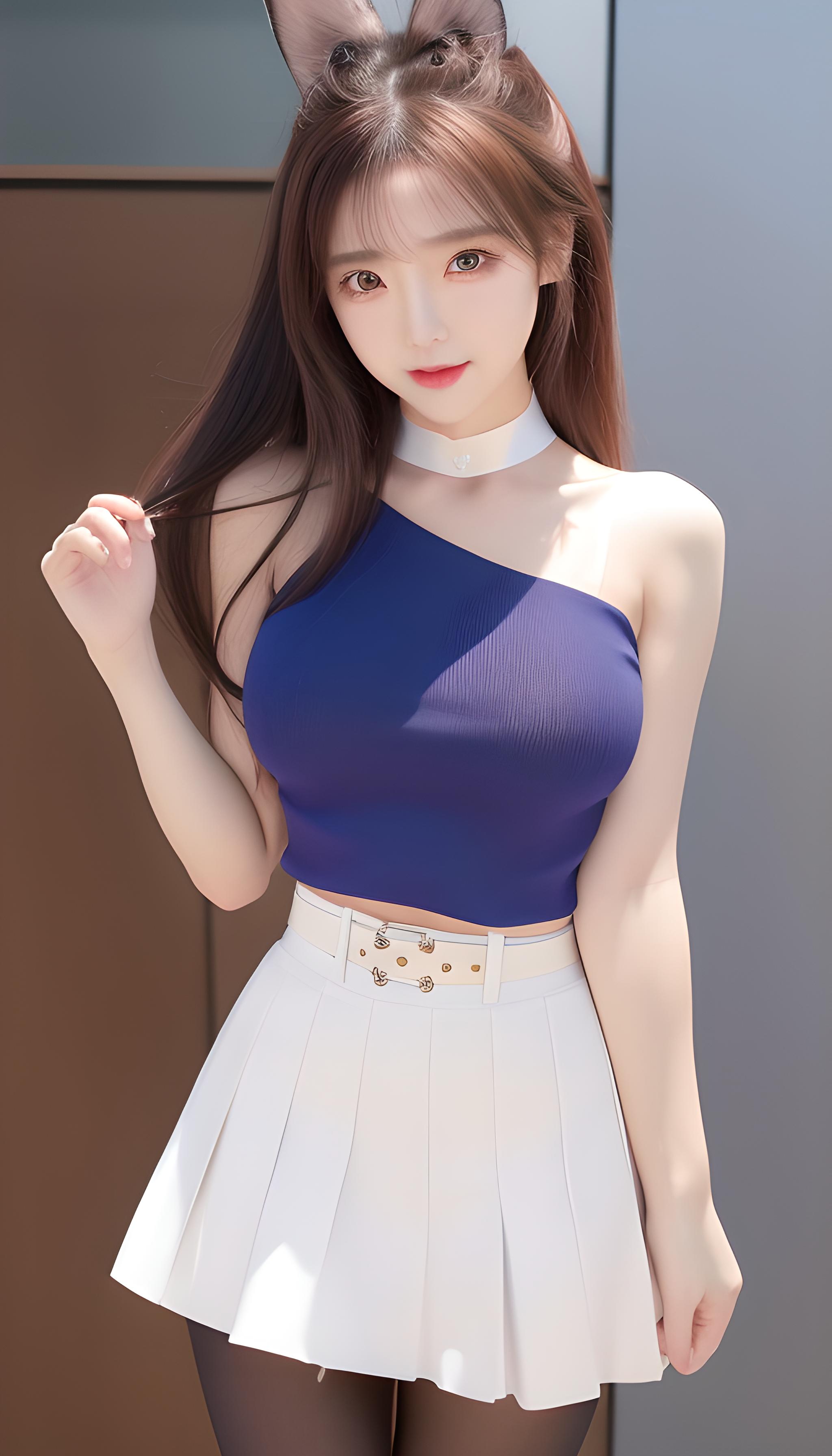 咒语(Prompt): 高清,微距镜头,警察,兔子耳朵,军装,百褶裙,海军陆战队服,腰带。高清,美少女,8k画质,最佳画质,巨胸,对镜头微笑,妩媚温柔,背影,丰满(((包臀裙))),(((齐b短裙))),(((蓝色裤袜))),露腿,完美身材,S型,完美身材比例,完美腿部线条,细腰,精致五官,非常可爱,水汪汪的大眼睛,紫色瞳孔,眼影,长睫毛,脸红,红色嘴唇,,银白的头发,全身特写,(现代),超现实,阳光明媚,细节光线,优雅的姿势,(latex dress,hotpants,tank top),((grey_pantyhose)),细节丰富,微笑,害羞,可爱,动人美女,8k分辨率,超高分辨率,一个16岁稚嫩少女可爱的少女,彩色清澈眼眸,顺滑的头发,高马尾,锁骨,精致完美的五官,最美的大眼睛,长睫毛,眼睛甜美有卧蚕,微笑,动态角度,极致画质,最高精度,精确完美的人体结构,(粉色超薄露肩针织毛)站姿