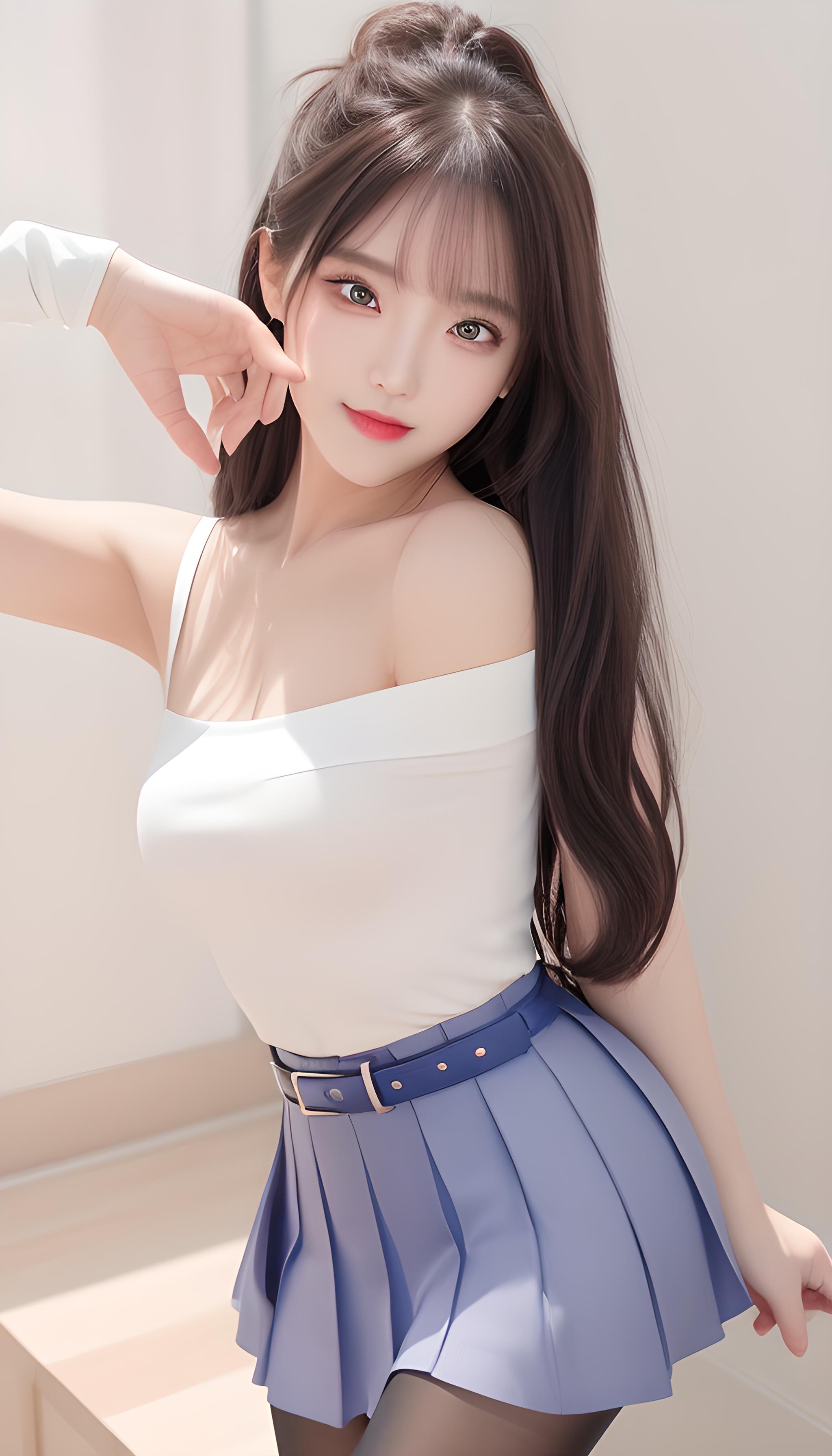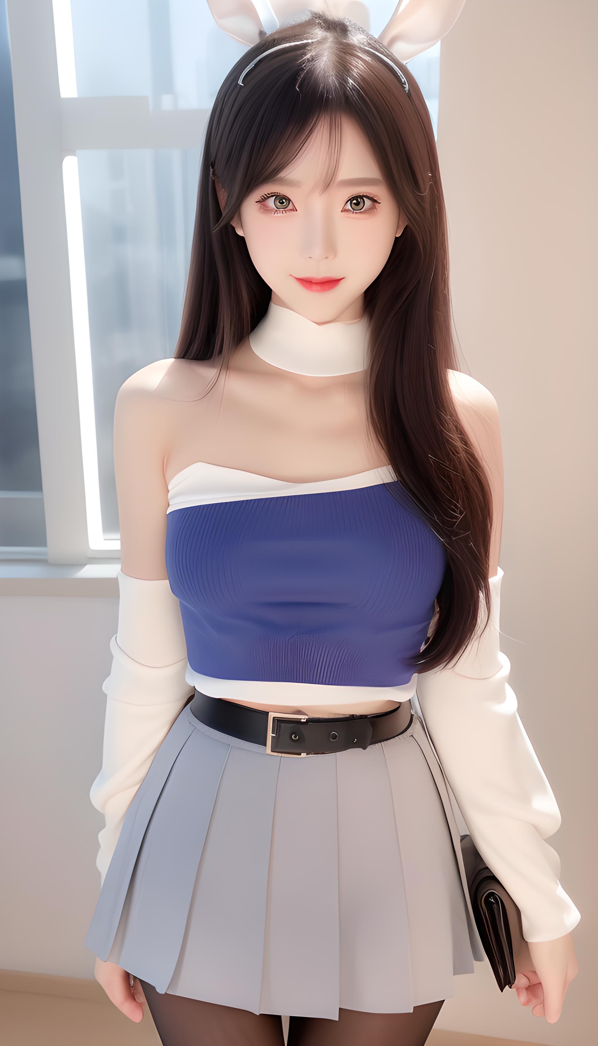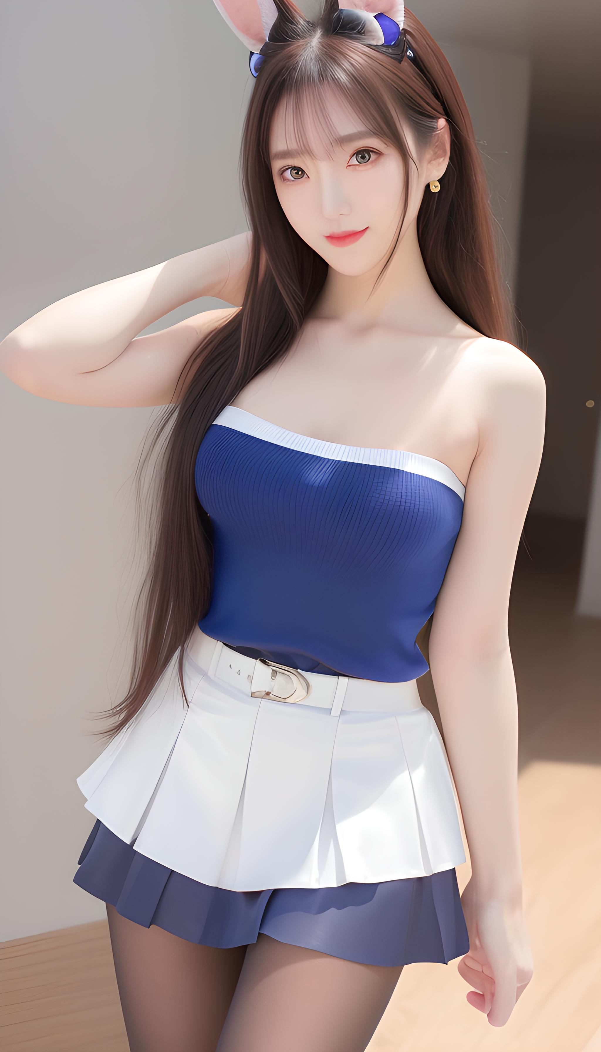 咒语(Prompt): 高清,微距镜头,警察,兔子耳朵,军装,百褶裙,海军陆战队服,腰带。高清,美少女,8k画质,最佳画质,巨胸,对镜头微笑,妩媚温柔,背影,丰满(((包臀裙))),(((齐b短裙))),(((蓝色裤袜))),露腿,完美身材,S型,完美身材比例,完美腿部线条,细腰,精致五官,非常可爱,水汪汪的大眼睛,紫色瞳孔,眼影,长睫毛,脸红,红色嘴唇,,银白的头发,全身特写,(现代),超现实,阳光明媚,细节光线,优雅的姿势,(latex dress,hotpants,tank top),((grey_pantyhose)),细节丰富,微笑,害羞,可爱,动人美女,8k分辨率,超高分辨率,一个16岁稚嫩少女可爱的少女,彩色清澈眼眸,顺滑的头发,高马尾,锁骨,精致完美的五官,最美的大眼睛,长睫毛,眼睛甜美有卧蚕,微笑,动态角度,极致画质,最高精度,精确完美的人体结构,(粉色超薄露肩针织毛)站姿