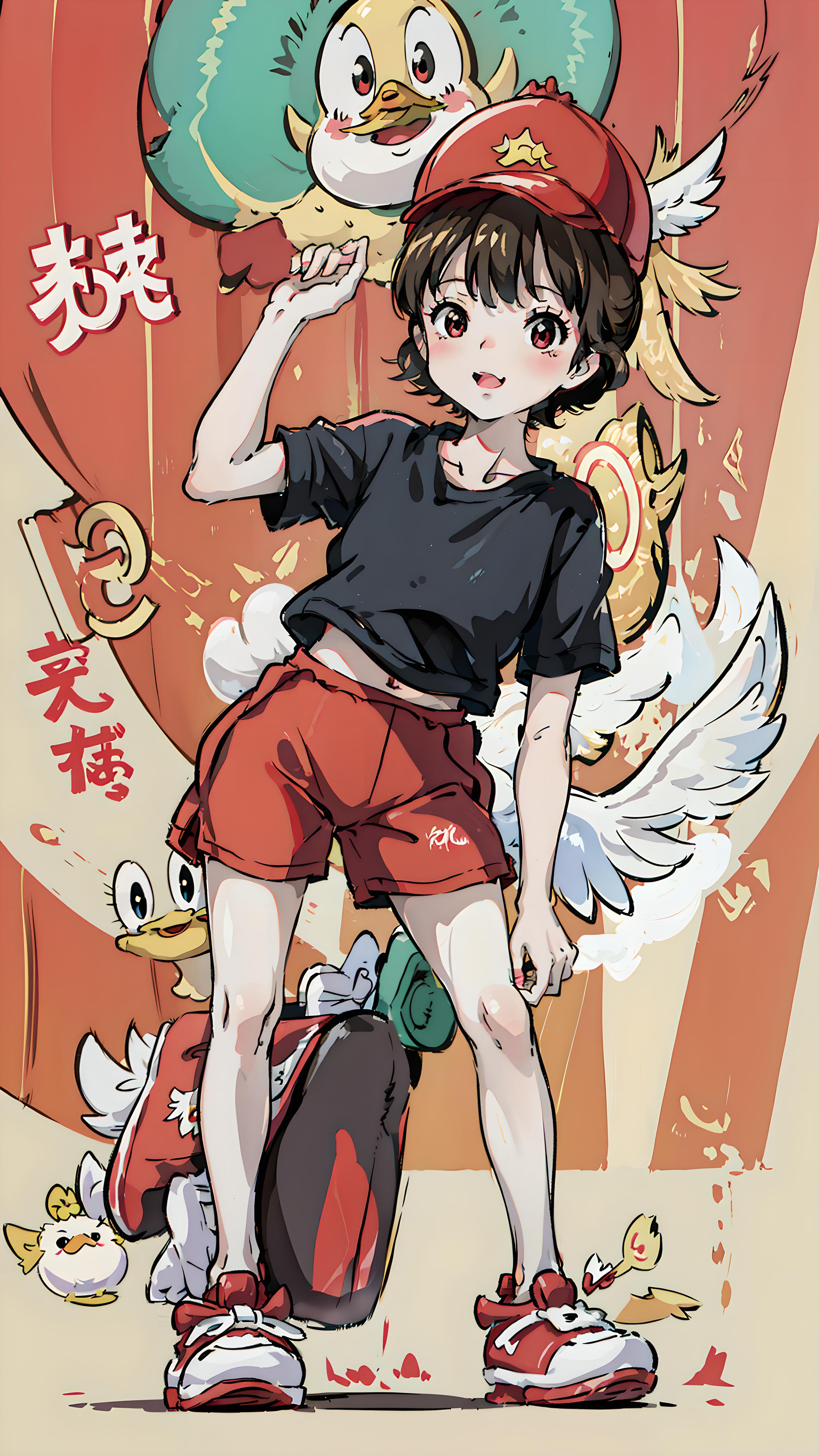 鸭子穿红色运动服