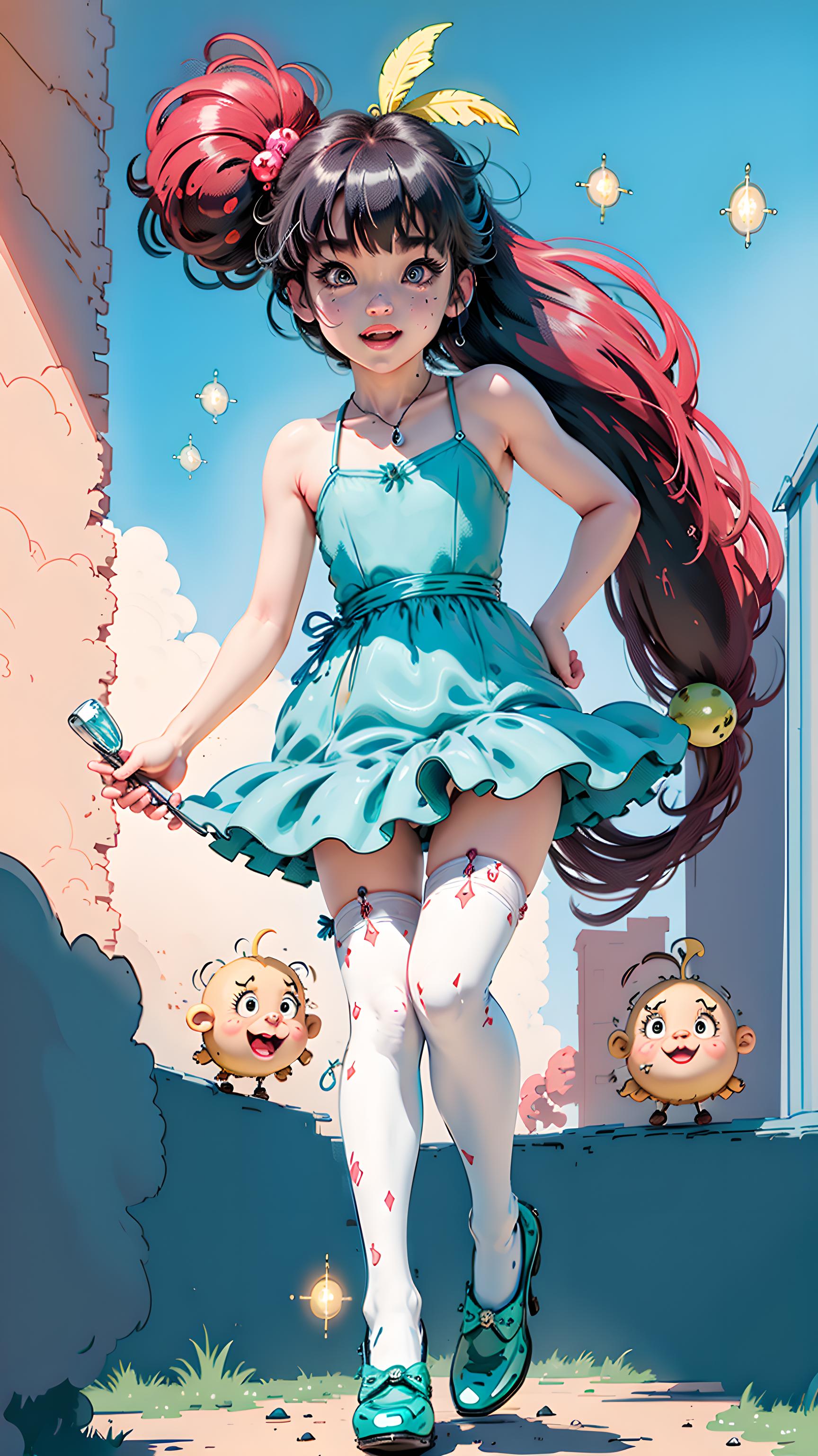 偷摘葡萄的小女孩,Q版,眉毛翘起,水汪汪大眼,(((闪闪发光瞳))),大笑,长发,凌乱发,羽毛发饰,珠宝首饰,丝带,长裙,高跟鞋,丝带边袜子,过膝袜,面向观者,夏天,太阳,动漫逼真,体积光,8k分辨率,大师作品,全景,精致的五官,发光皮肤