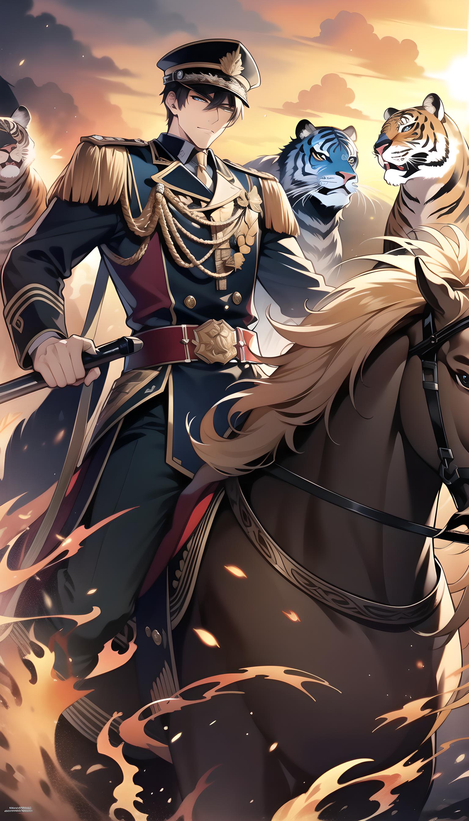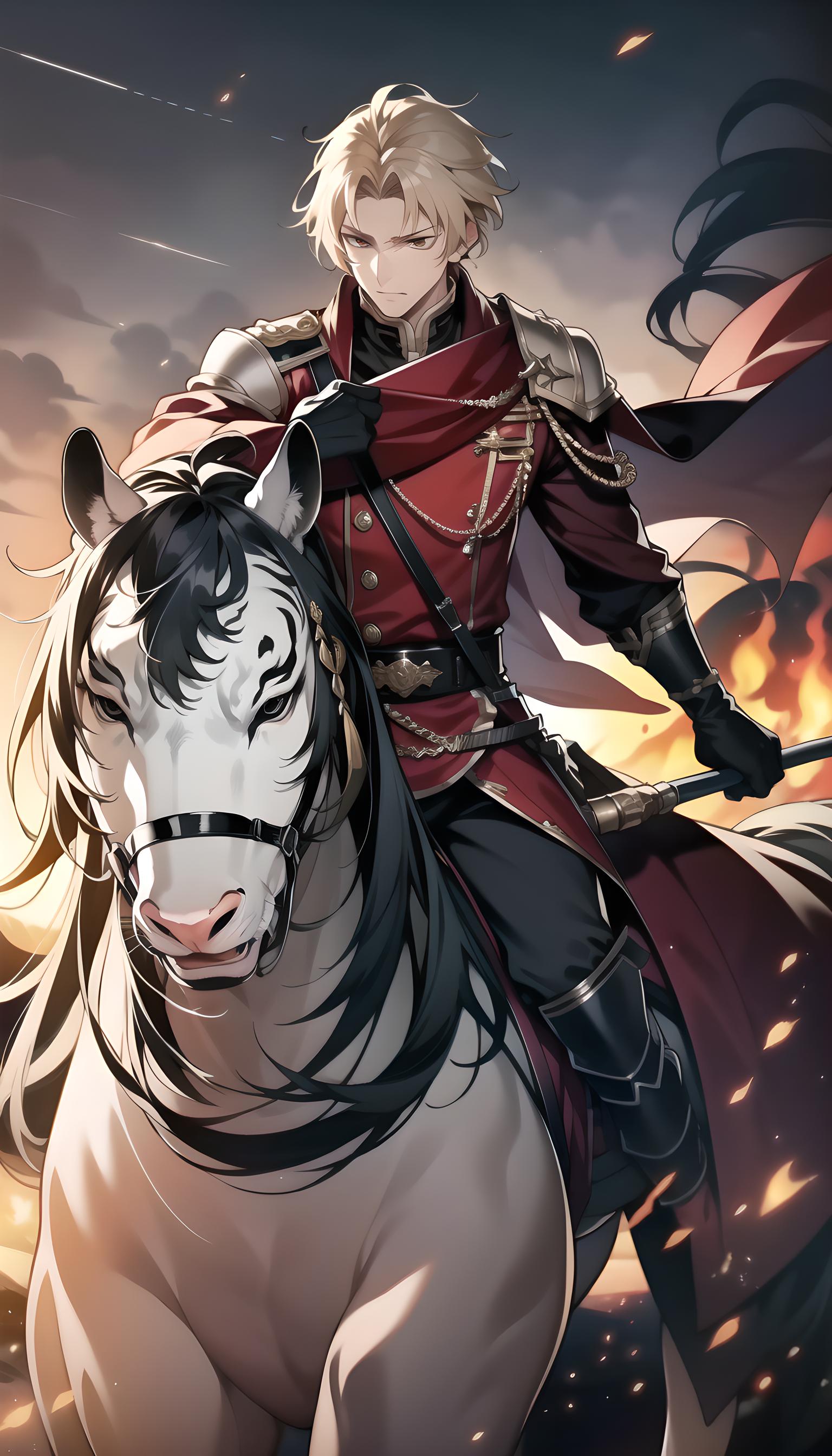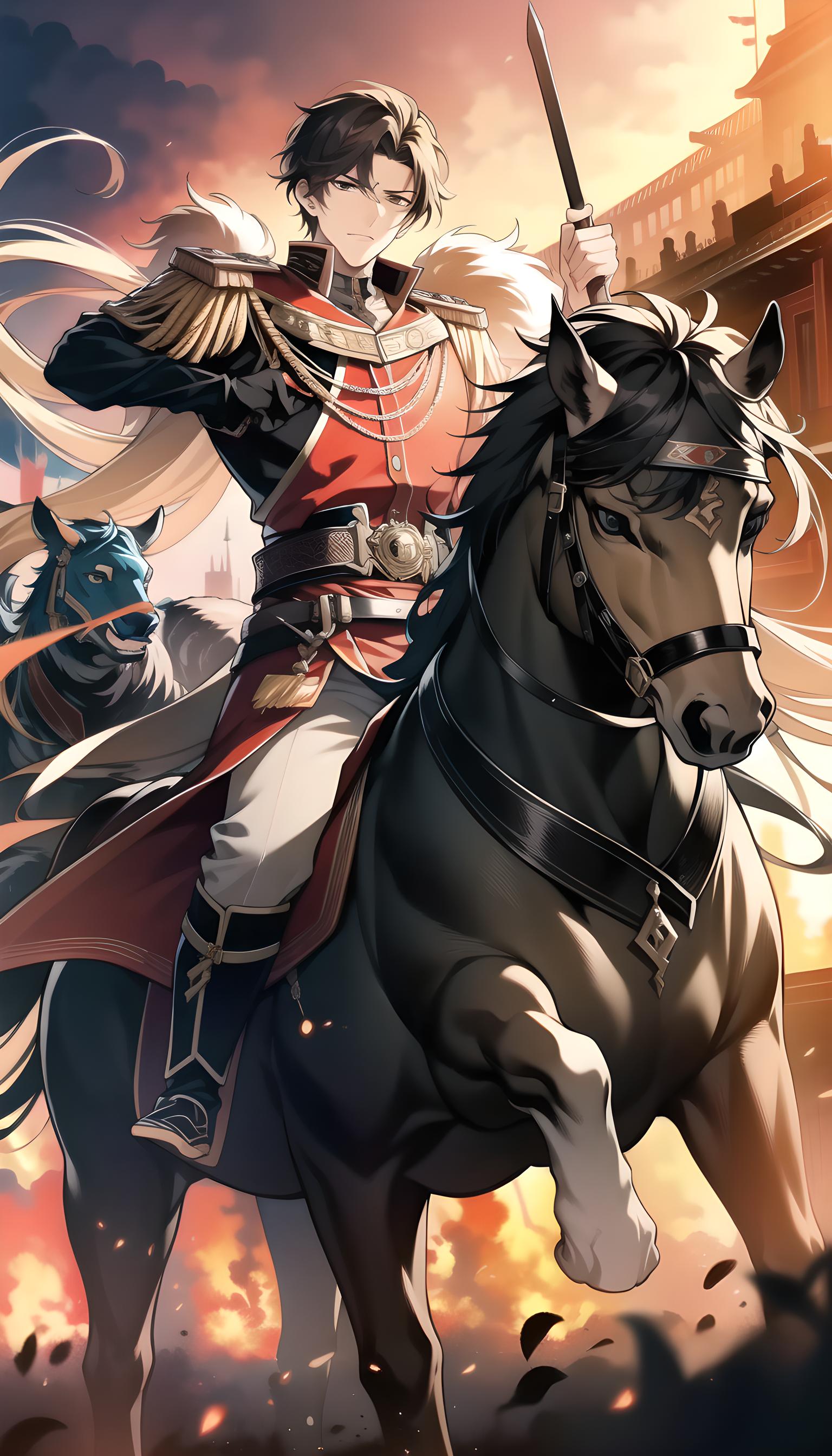 本作品描绘了一位怀有雄心壮志 驰骋疆场 报国杀敌的帅气将军