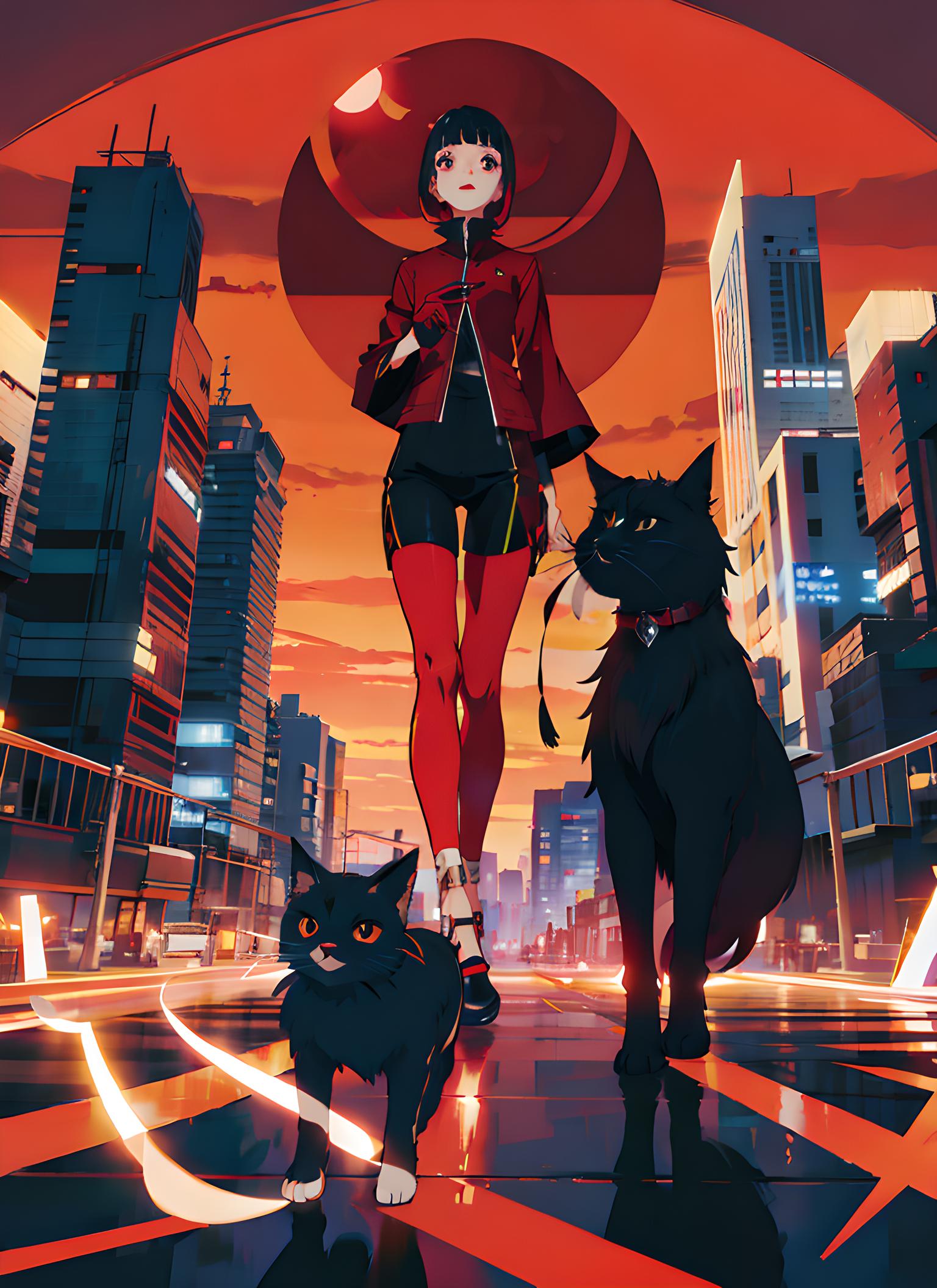 落日,黑猫,都市