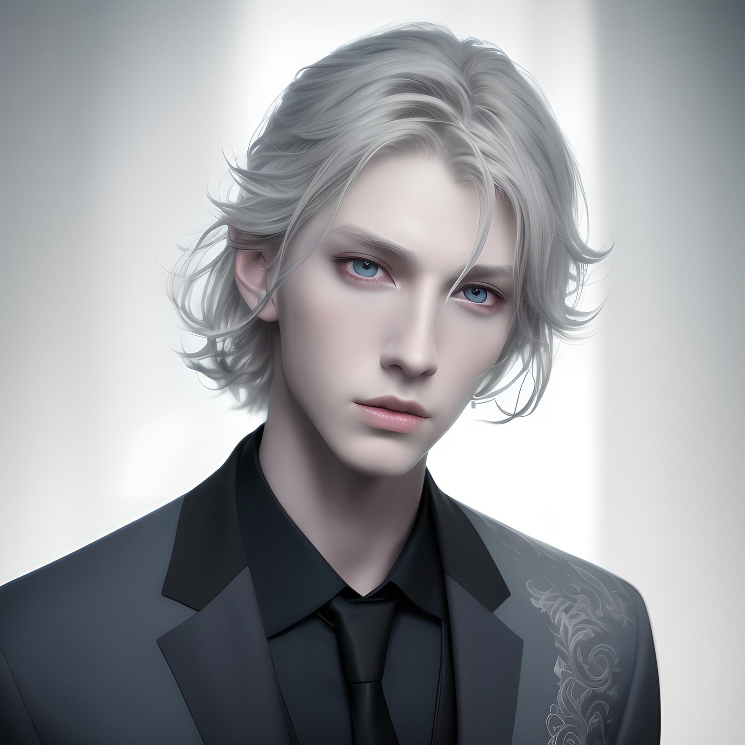 1个 5 岁男孩的肖像,一个高大、苗条的男孩,脸色苍白,尖尖的脸,白色的金发,灰色的眼睛,穿着衬衫超现实的脸,美丽的眼睛,幻想艺术,格雷格·鲁特科斯基的风格,复杂的、超详细的、光滑的,整体照