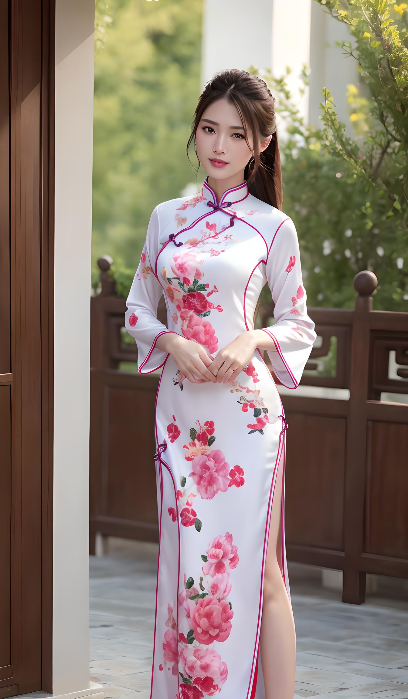 碎花旗袍美女
