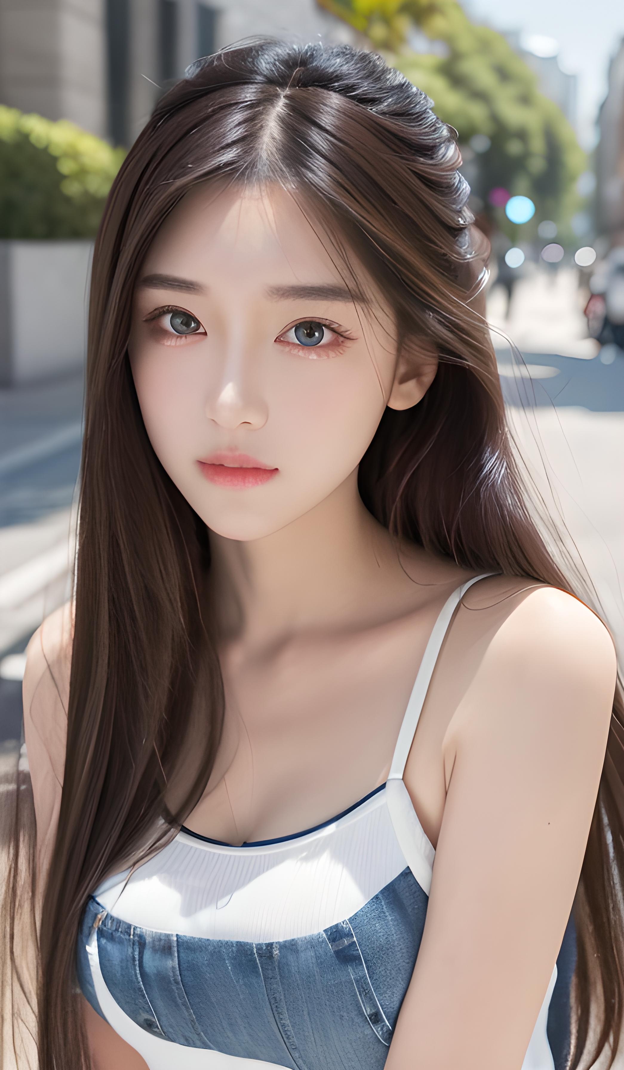 长发短裤美女街拍