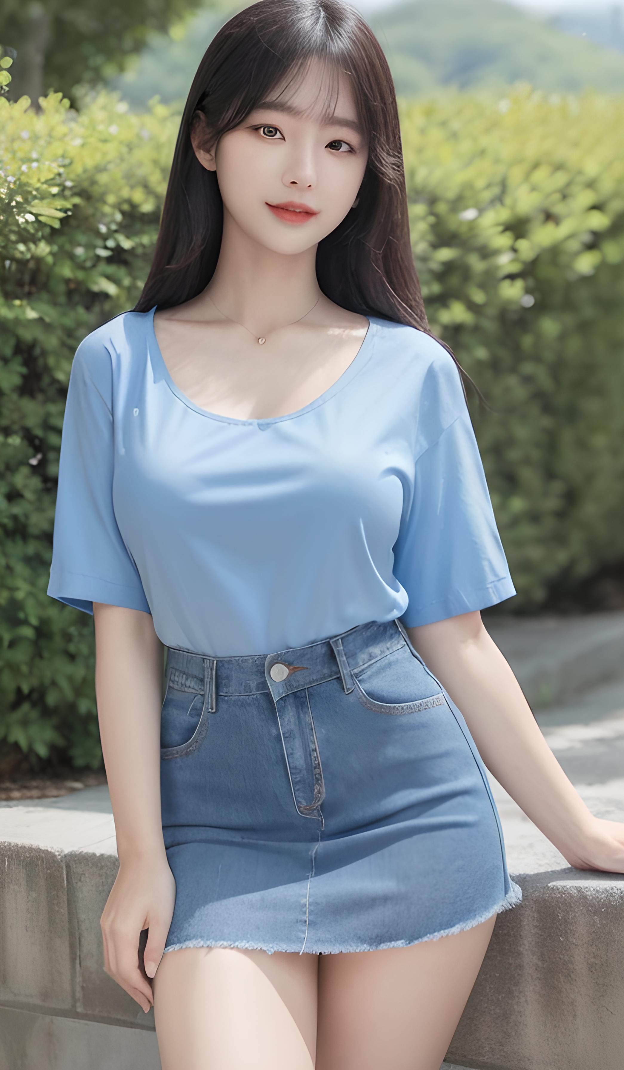 蓝色牛仔裙美女