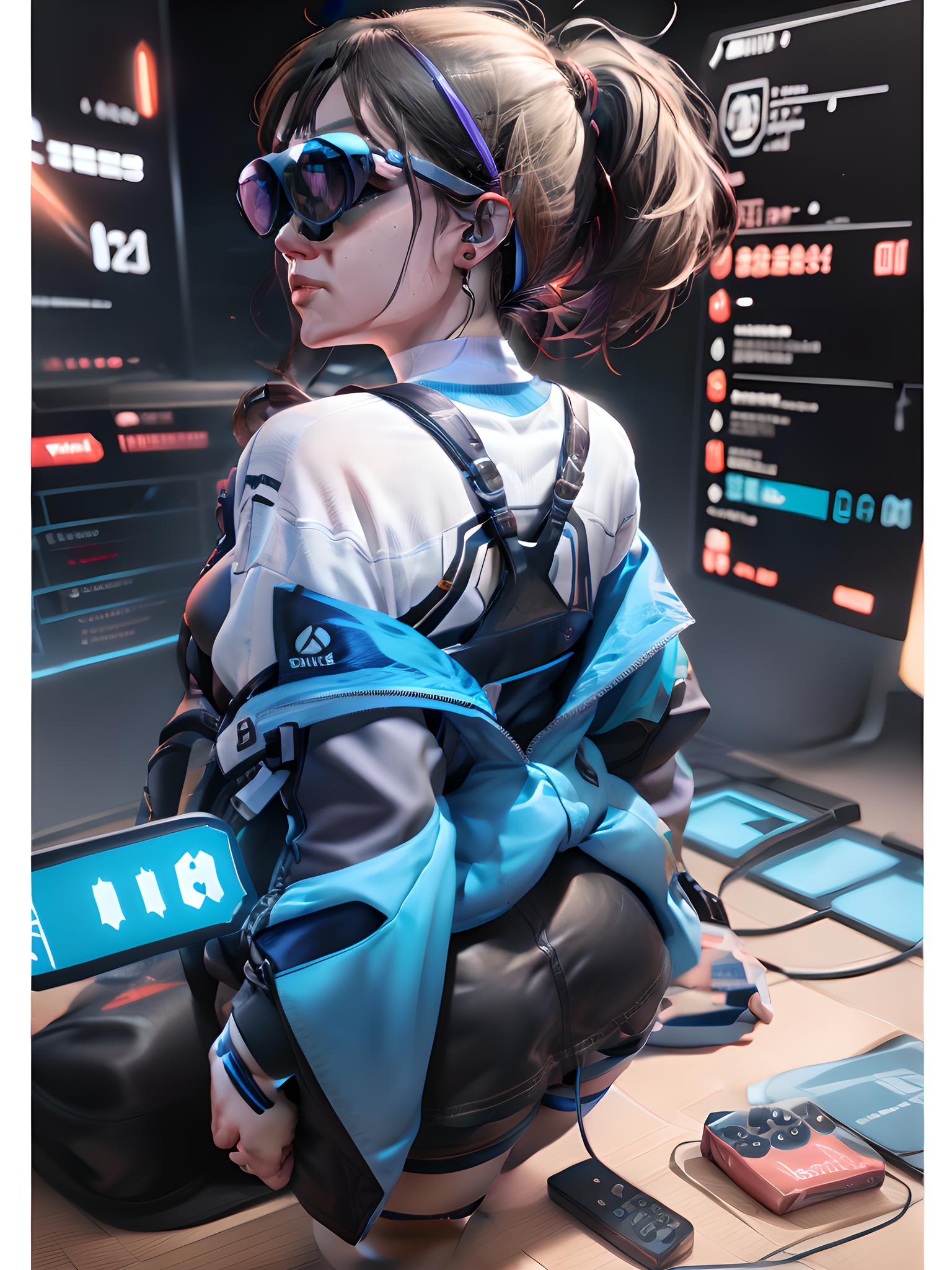带着AR眼镜的少女沉浸于游戏的世界当中