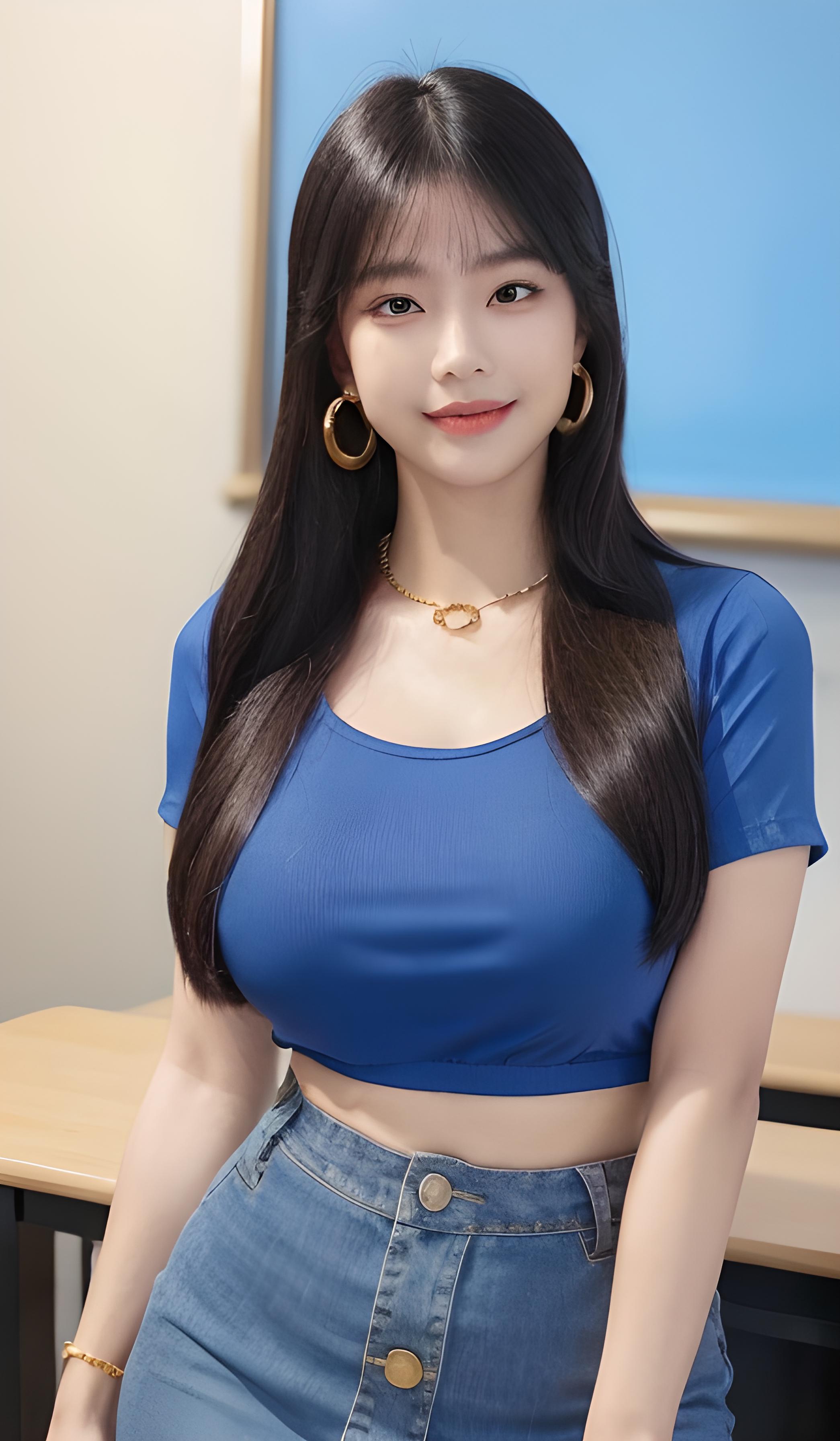 牛仔包臀裙美女