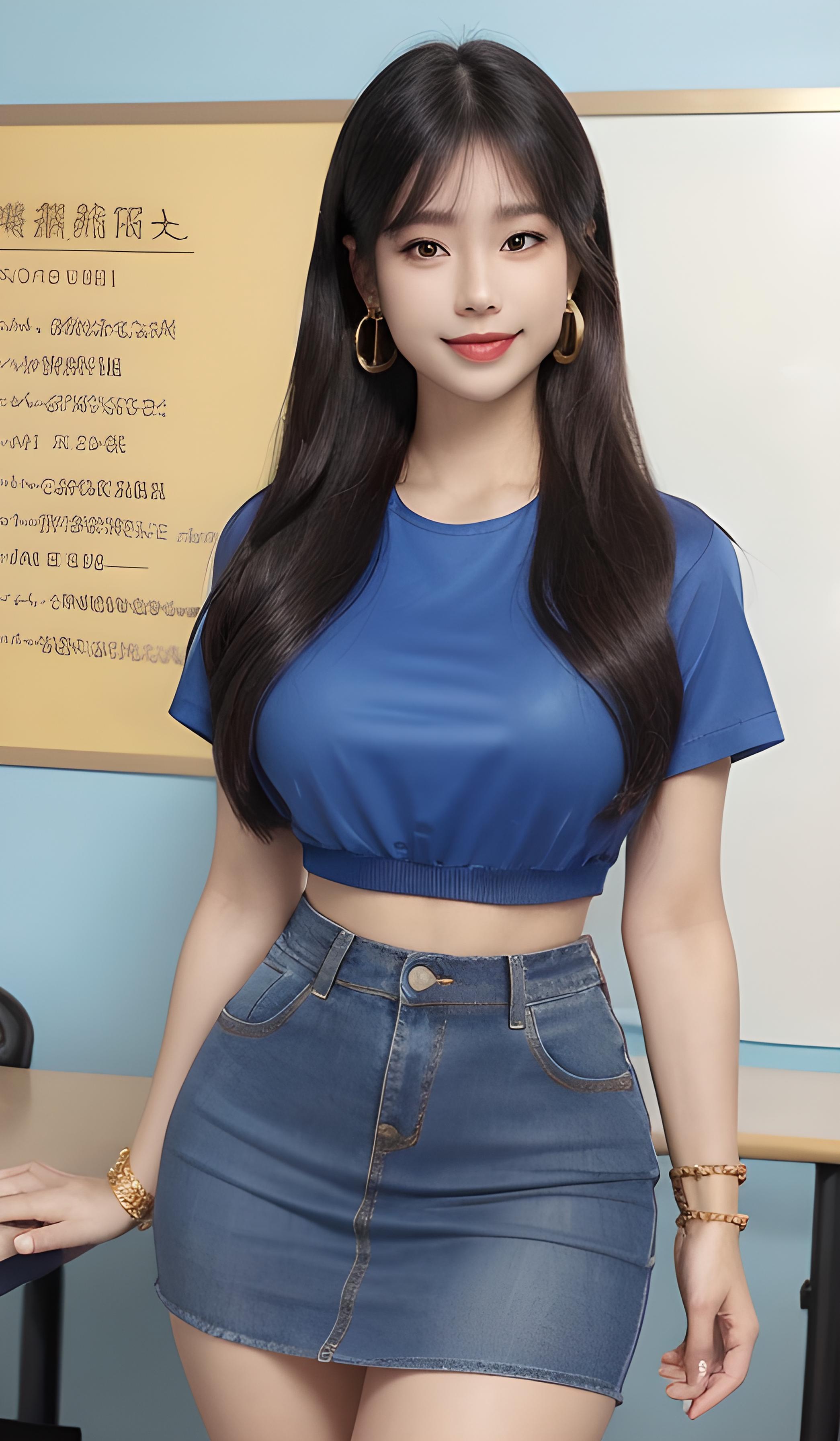 牛仔包臀裙美女