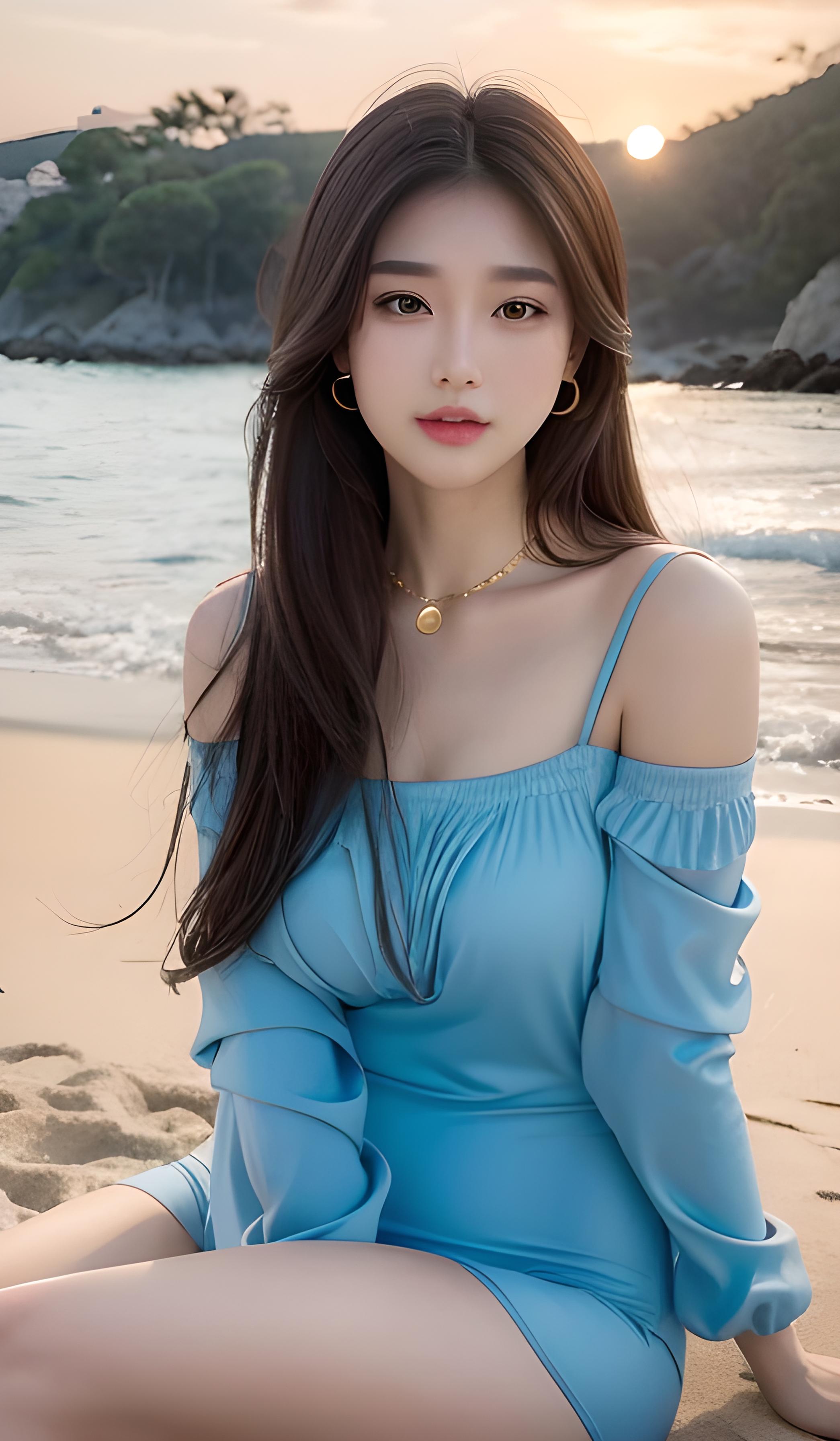 蓝色连衣裙美女