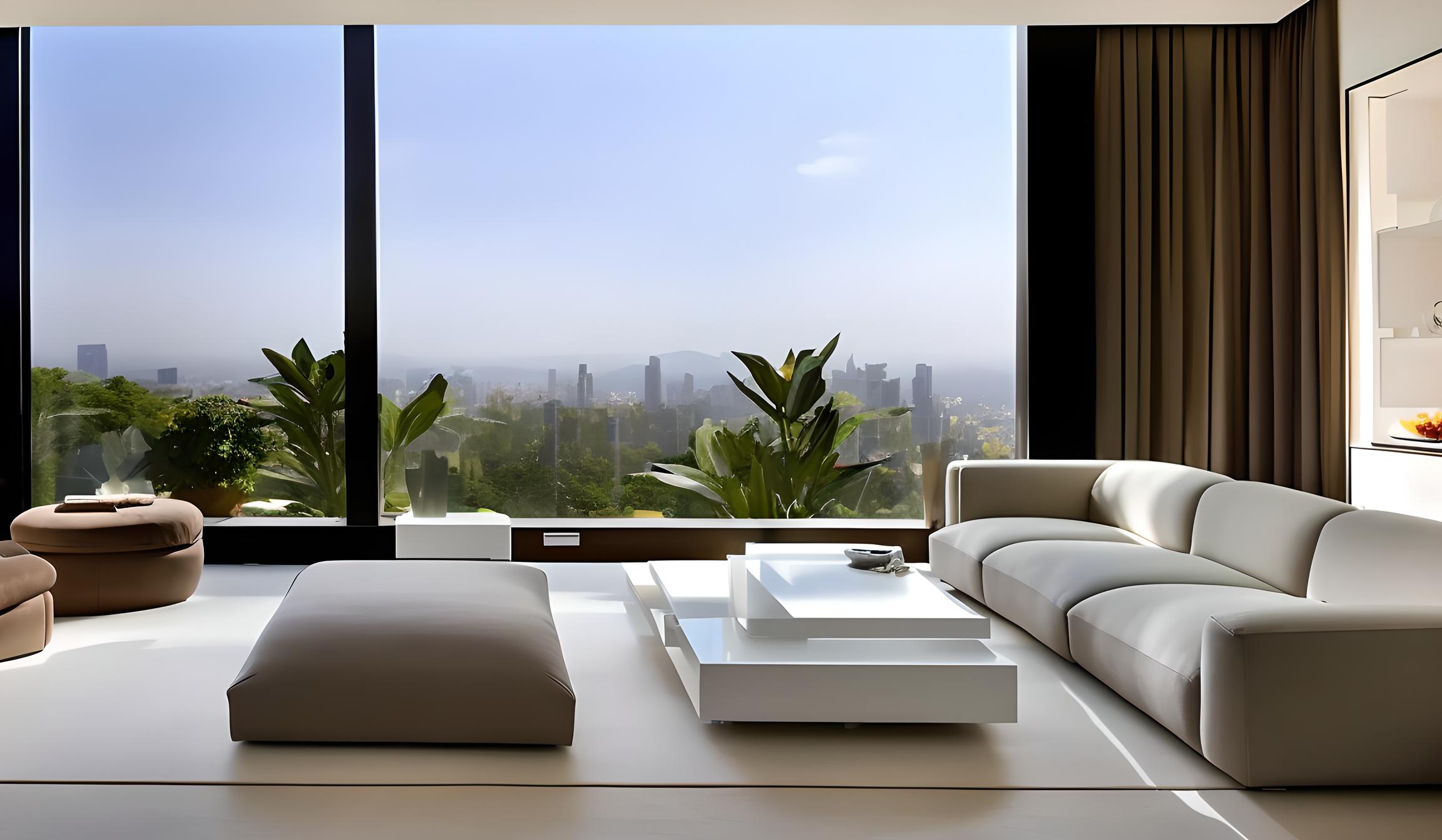 极简主义风格,大面积落地窗将户外风景尽收眼底