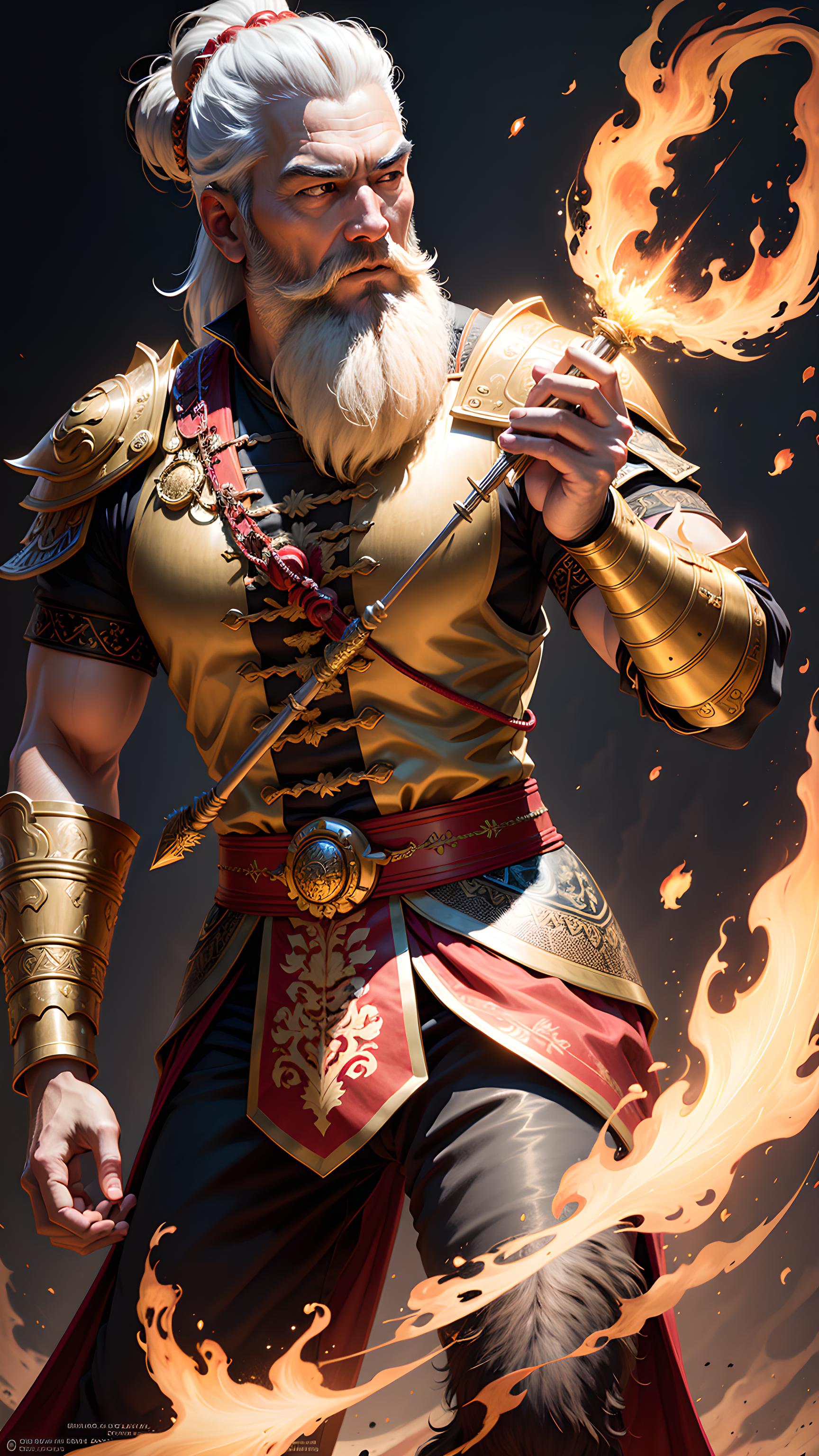 看,我的法杖能喷火!人物,古代,神话,古装,将军,魔法,火焰。