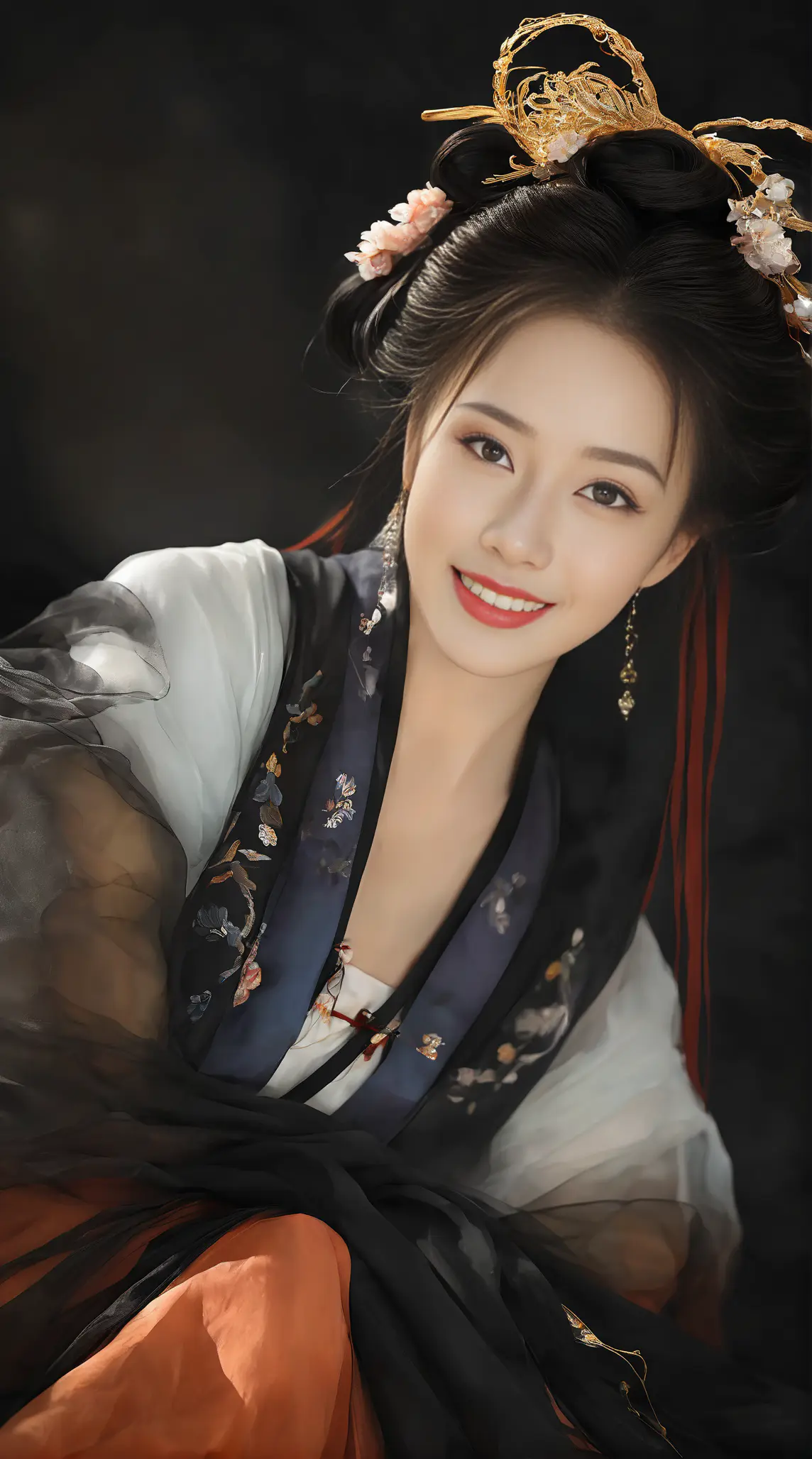 ((最好画质)),未来主义,暗鸦法,高细节,8k分辨率,女孩,女神,微笑,马尾辫,瓜子脸,高鼻梁,皮肤白皙,全身照,仙气飘飘,精致凤凰首饰,柔光,中景