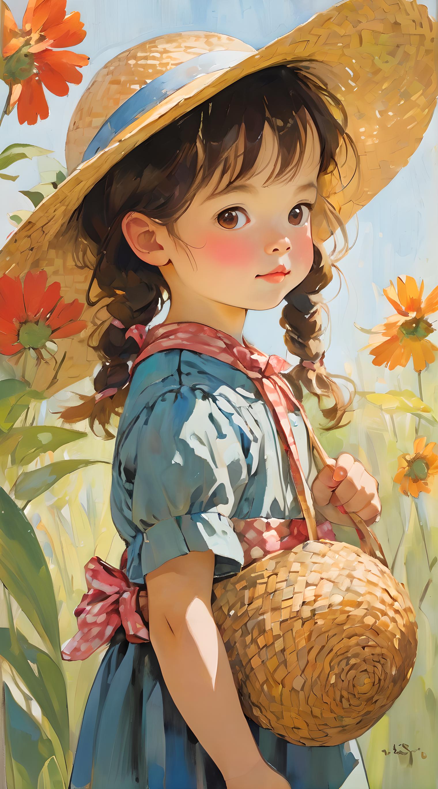 一个带草帽的小女孩