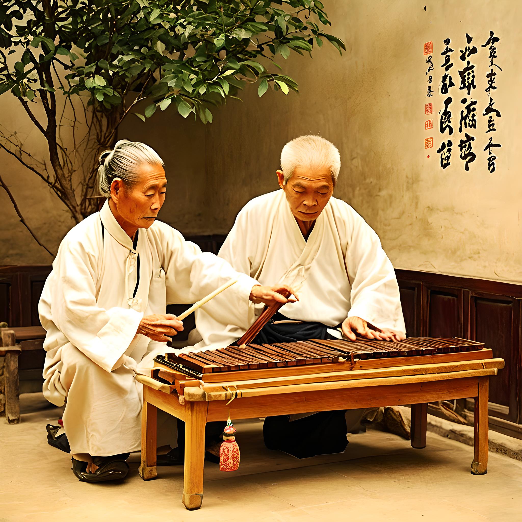 屋内,一个白发老人正在调试面前的古琴,满是皱褶的脸庞神采奕奕,穿着白大褂颇有大师风范。