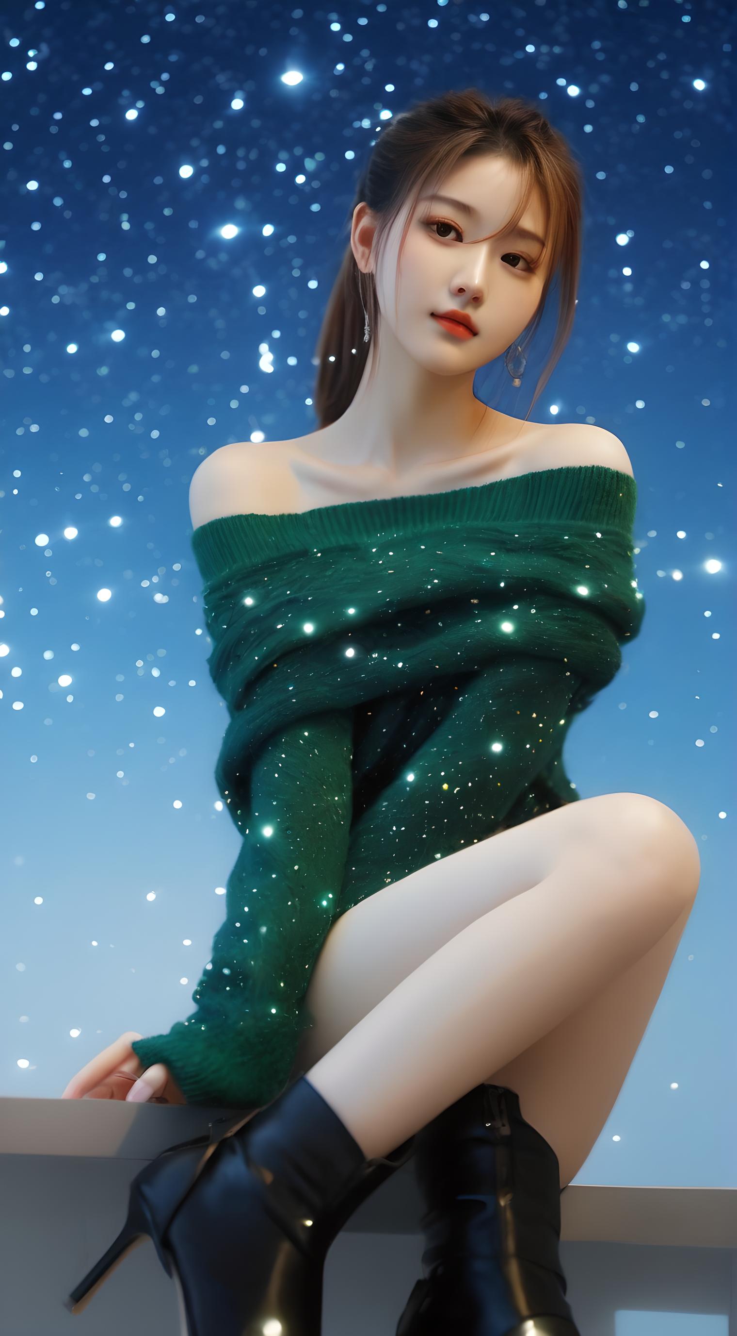 绿毛衣美女