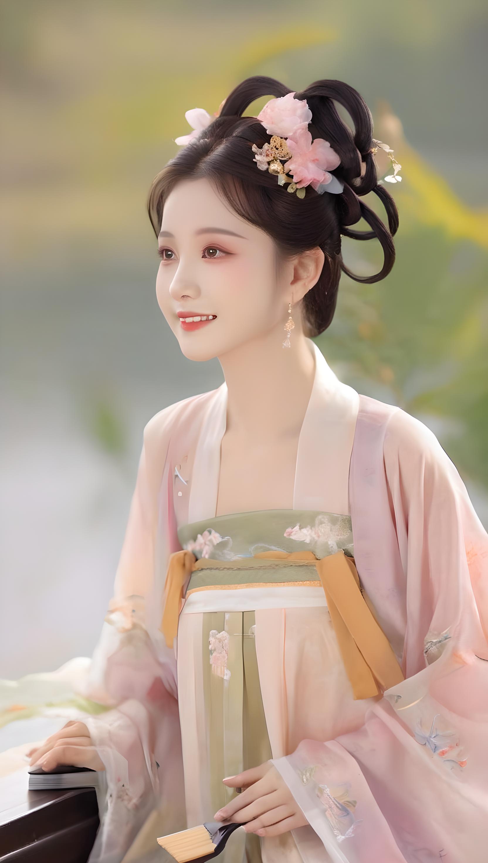 绘制于画卷上的仕女,穿着华美的衣裳,妆容淡雅,举止娴静,仿佛在诉说着千年来的风情与情感。画中的仕女们或是在湖畔拈花笑语,或是在亭台间弹琴饮酒,每一位女子的容颜都是如此生动真实,仿佛可以从画卷中走出来。她们的细腻妆容,华丽服饰,展现了古代女子的高贵与优雅。她们的穿着打扮,妆容举止,无不展现着一种独特的韵味和风采。那些华美的汉服,如云霞般飘逸,如丝绸般柔软。她们头戴发髻,面带红粉,眉目含情,一袭飘逸的裙裾下,仿佛蕴藏着无尽的柔情和幽雅。她们的妆容如画,精致而不失庄重,如同一幅幅精美的画作,令人倾心