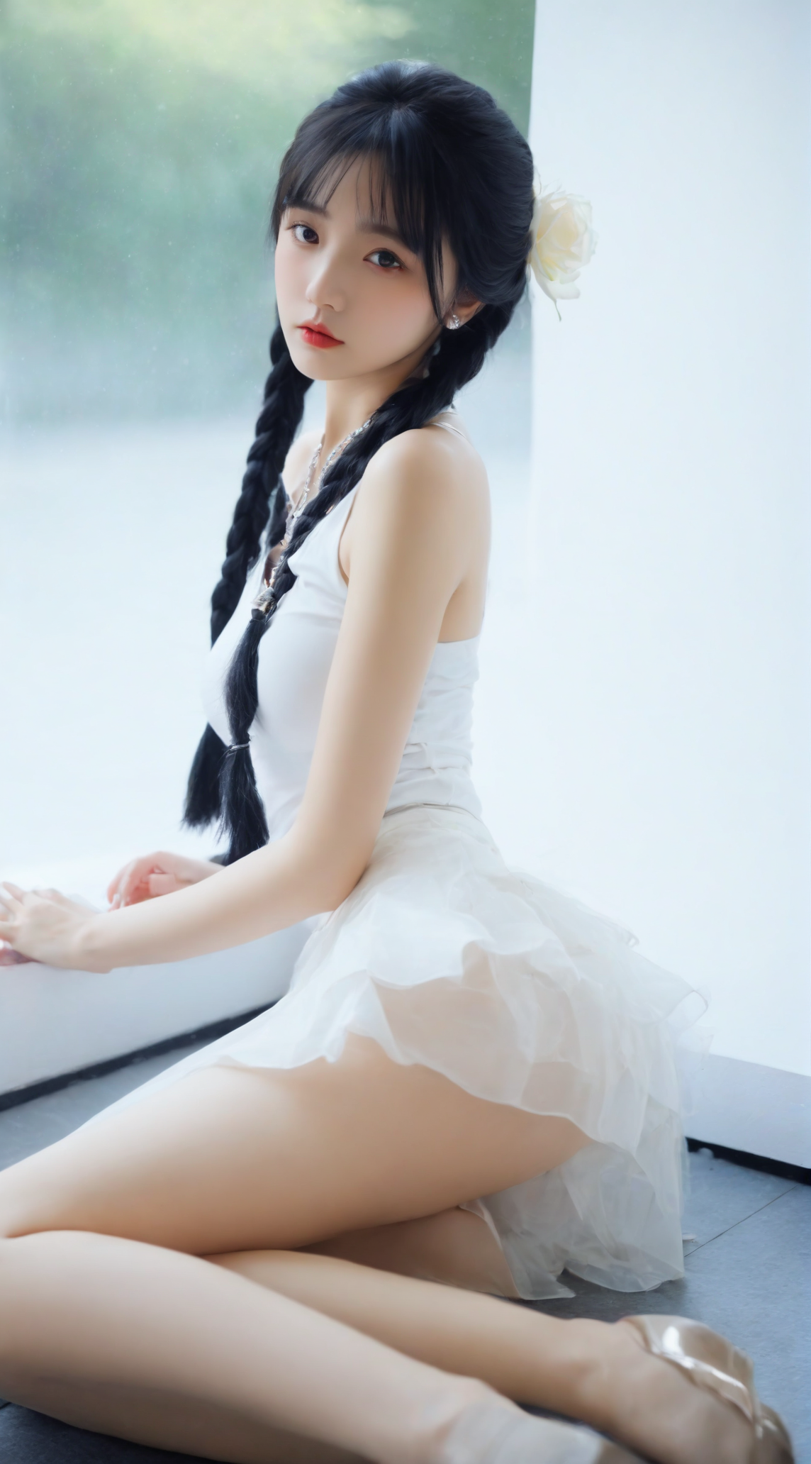 最好画质,8k,精致细节,绝美性感包臀裙御姐,长睫毛,大眼睛有卧蚕,腮红,水润粉唇,精致妆容,(面部特写)((全身照)),(修长的双腿),白嫩肌肤,(((穿着白色职业装,丰满大胸前凸后翘,黑色包臀开叉短裙))),锁骨,项链,凌乱长发,丰满胸部,
