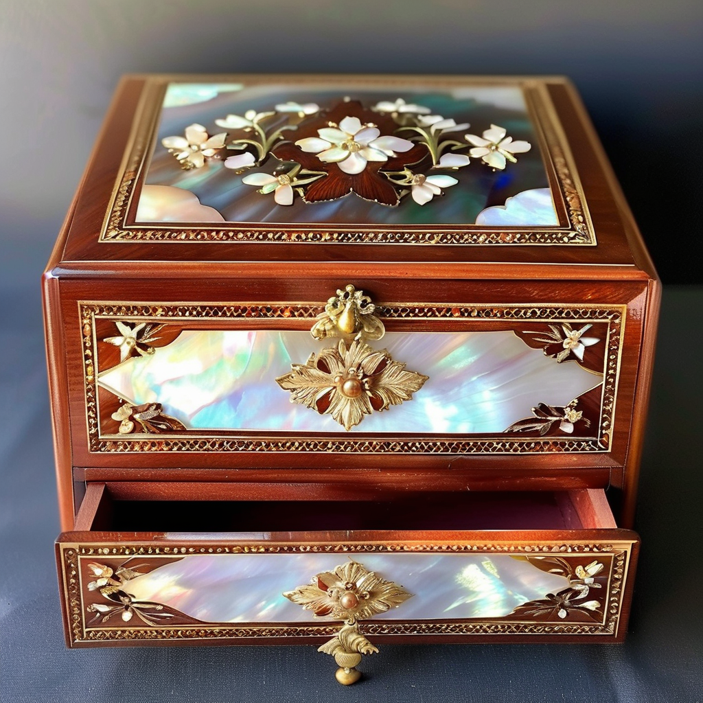 红木首饰盒 有螺钿镶嵌 精美的 华丽的 精致的