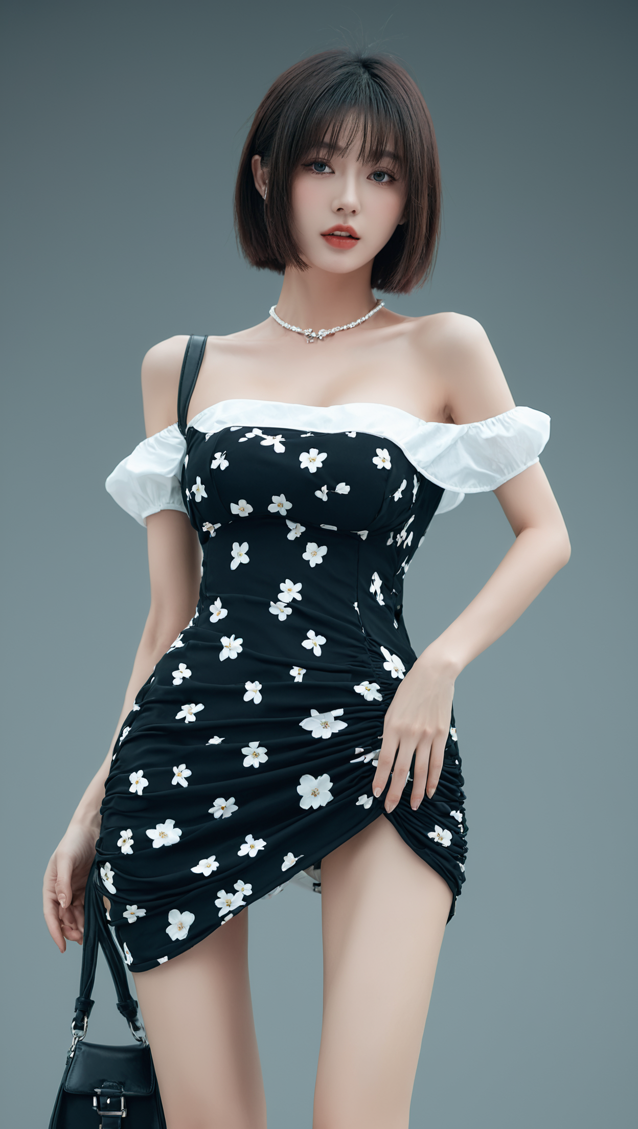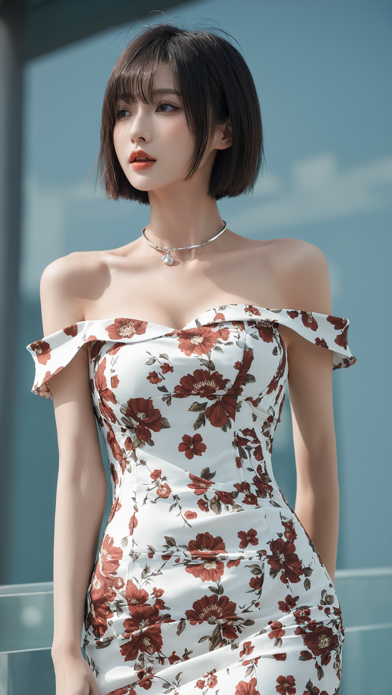 不对称露肩花上衣