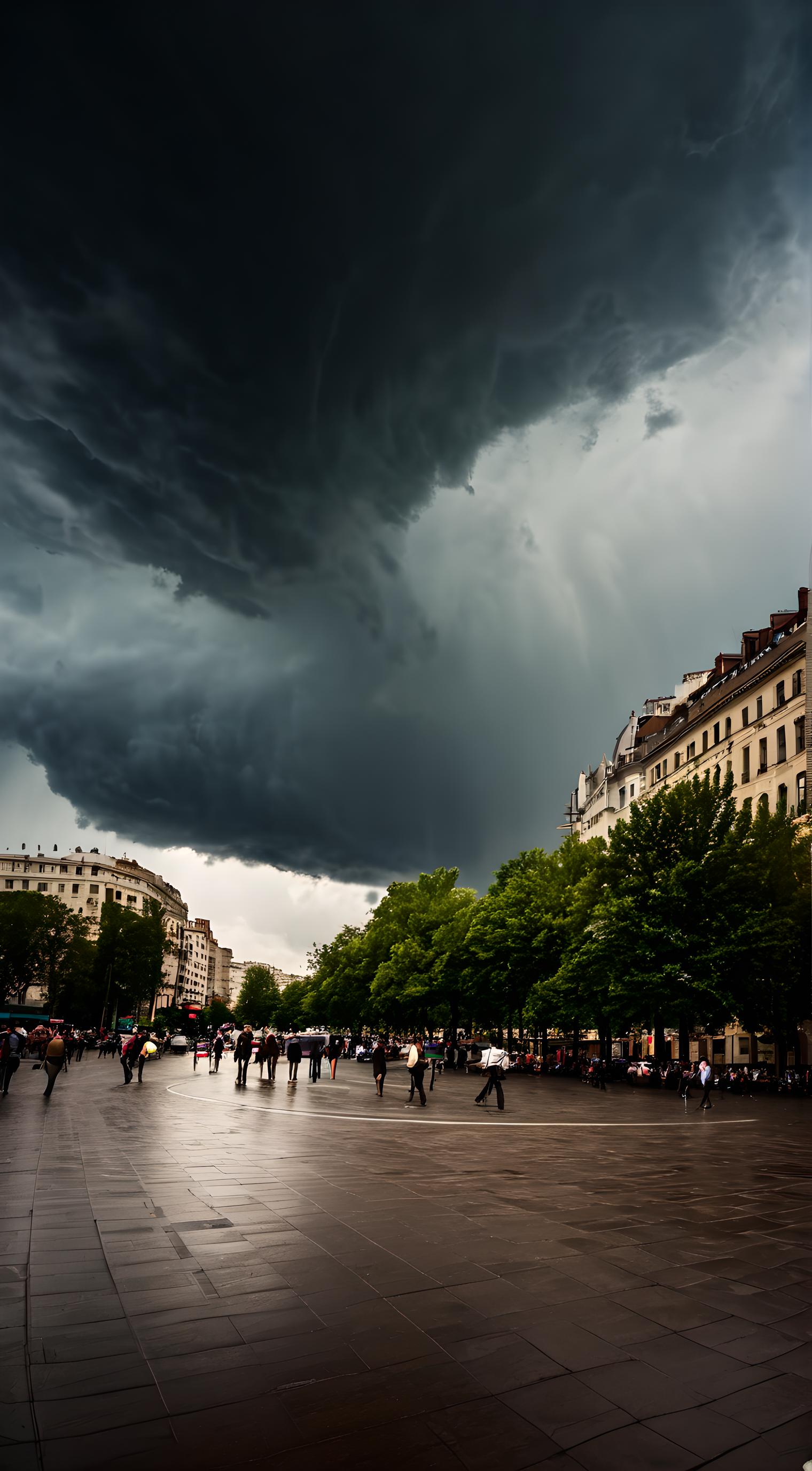 城市里模模糊糊 狂风卷起了旋转的圈 行人匆匆