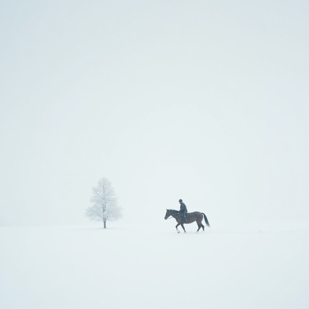 在一片茫茫大雪之中,无垠的白色覆盖了大地,只有远方的一个微小黑点打破了这份寂静。