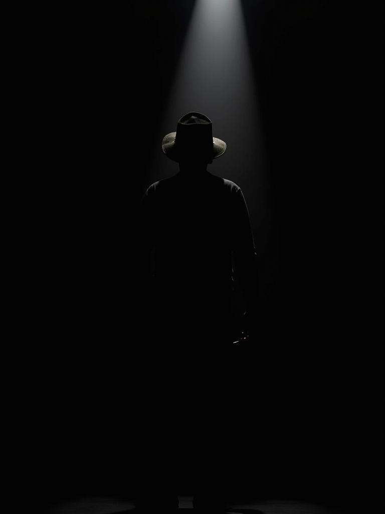 有一个人站在一束光下