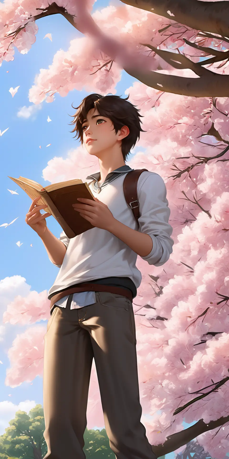 一位16岁亚裔少年,金色阳光透过梧桐树叶洒在白色连帽卫衣上,浅蓝色牛仔裤,单手抱着滑板仰头大笑,琥珀色瞳孔映着光斑,身后模糊的樱花树随风飘落花瓣,逆光营造温暖光晕,柔焦处理,宫崎骏动画风格水彩质感"图书馆落地窗前,制服少年倚窗翻阅精装书,午后阳光为栗色卷发镀上金边,衬衫领口微开露出锁骨,修长手指轻点书页,窗外银杏叶纷飞,新海诚式光影处理情感符号:融入「手绘纸飞机」「透明气泡」「发光四叶草」等象征性元素Makoto Shinkai style/Takeshi Obata character design)并调整光照参数(推荐golden hour lighting + f/2.8光圈虚化)。