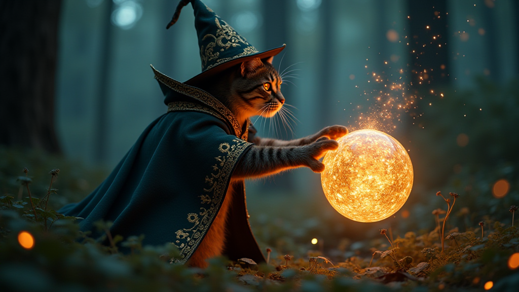 魔法猫咪在施法魔法球