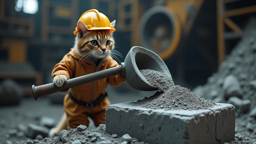 拟人化的猫咪身着矿工服戴头盔