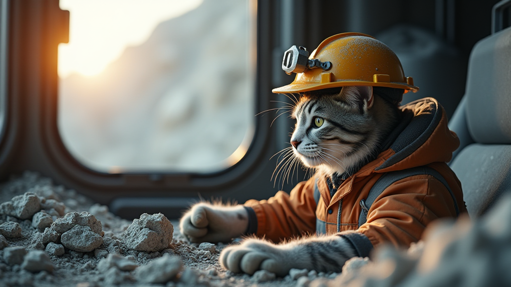 矿工猫咪在办公室看矿土