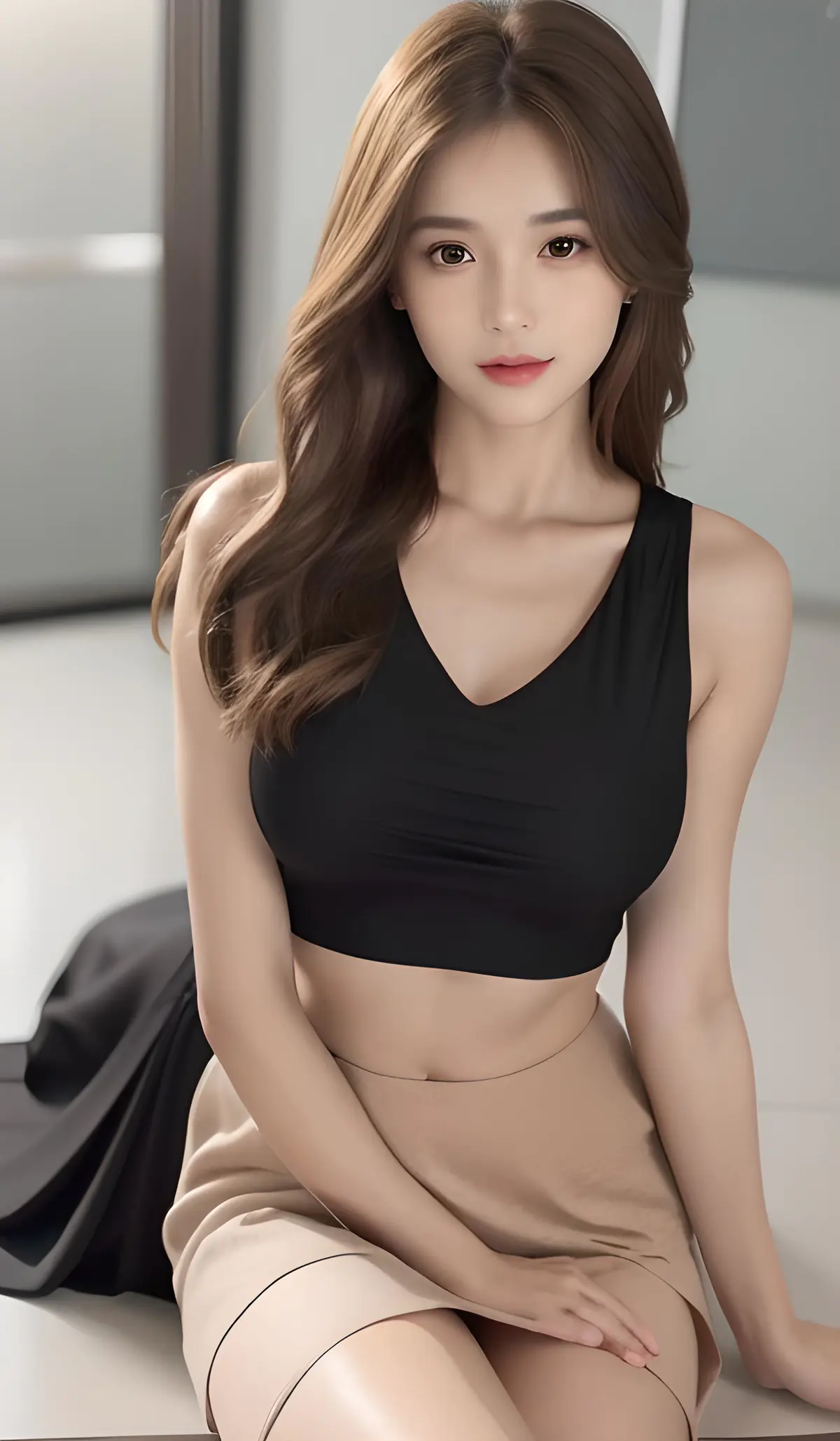 20岁左右的女孩,单纯,极致漂亮细腻的,(淡妆),棕色头发,甜美的笑容,细腻漂亮白皙的皮肤,逼真写实的,精致完整的五官,脸部刻画详细,高鼻梁,红色嘴唇,漂亮温柔美少女,飘柔顺滑发丝,极致细腻的头发,柔美的气质,脸部补光,超现实,写实,16K画质,极端细节,逼真细节,大师作品,逼真极致,身材,绝美,纯欲,绝色美女,绝世佳人,最高画质,16k分辨率,女神,微笑,精细五官,头发过肩,棕发,大长粗腿,(((黑色低腰露脐法式上衣))),(((短裙))),阳光,斜对镜头,身材匀称紧实,温柔的眼神,露出大腿,站立姿势,全身照,