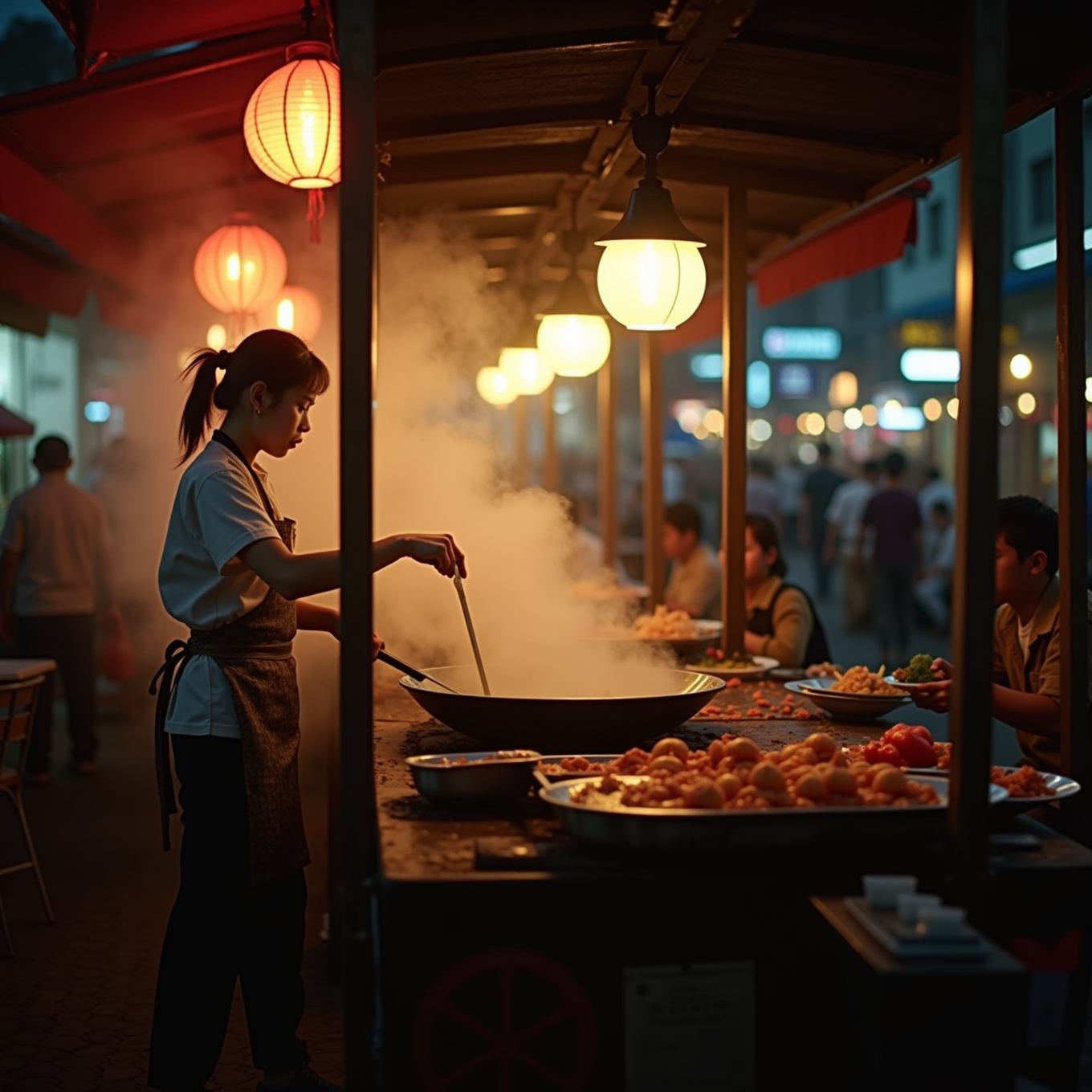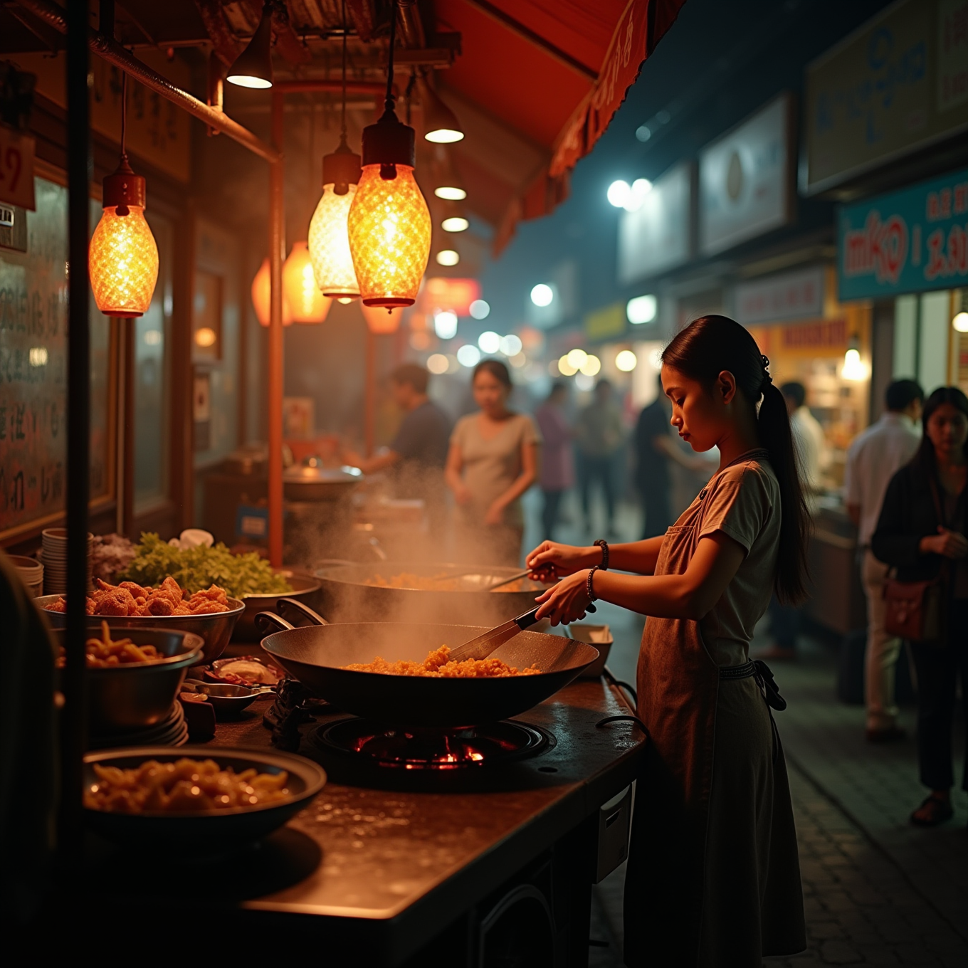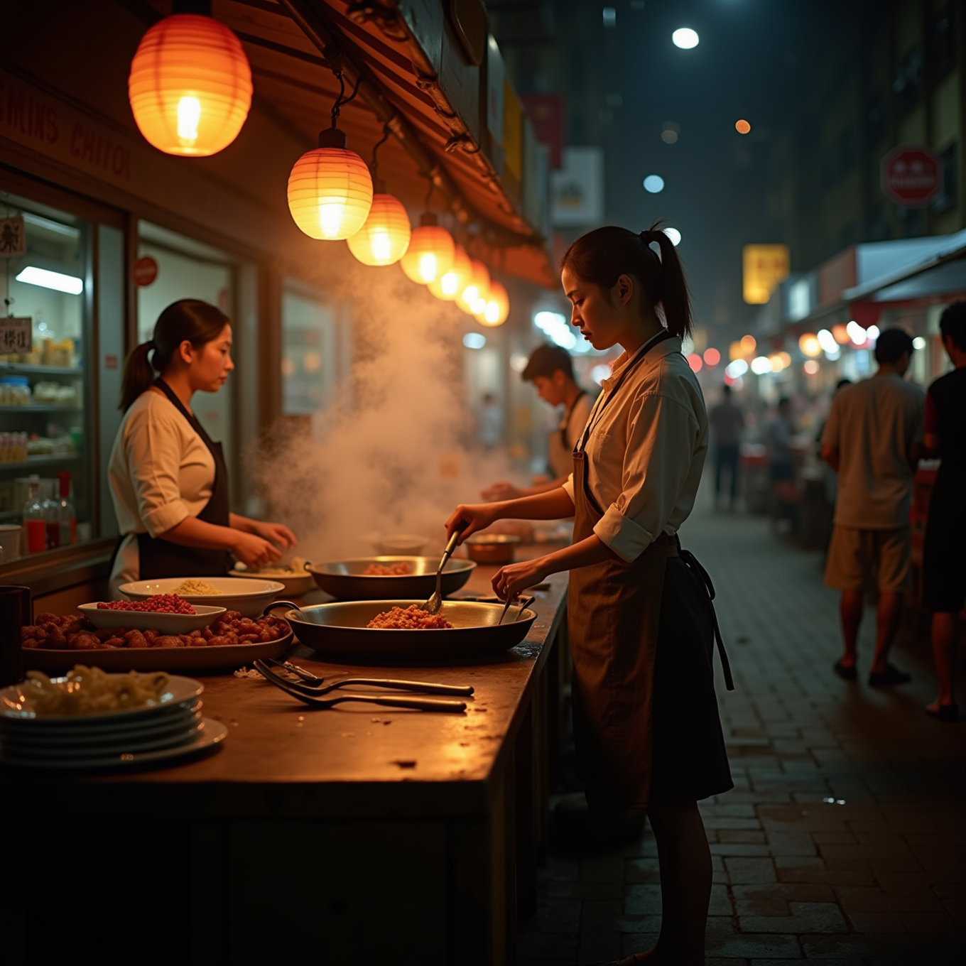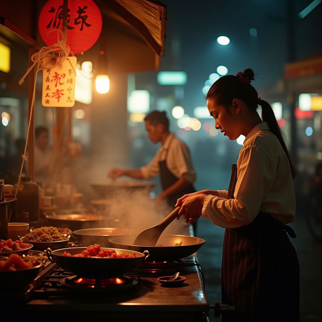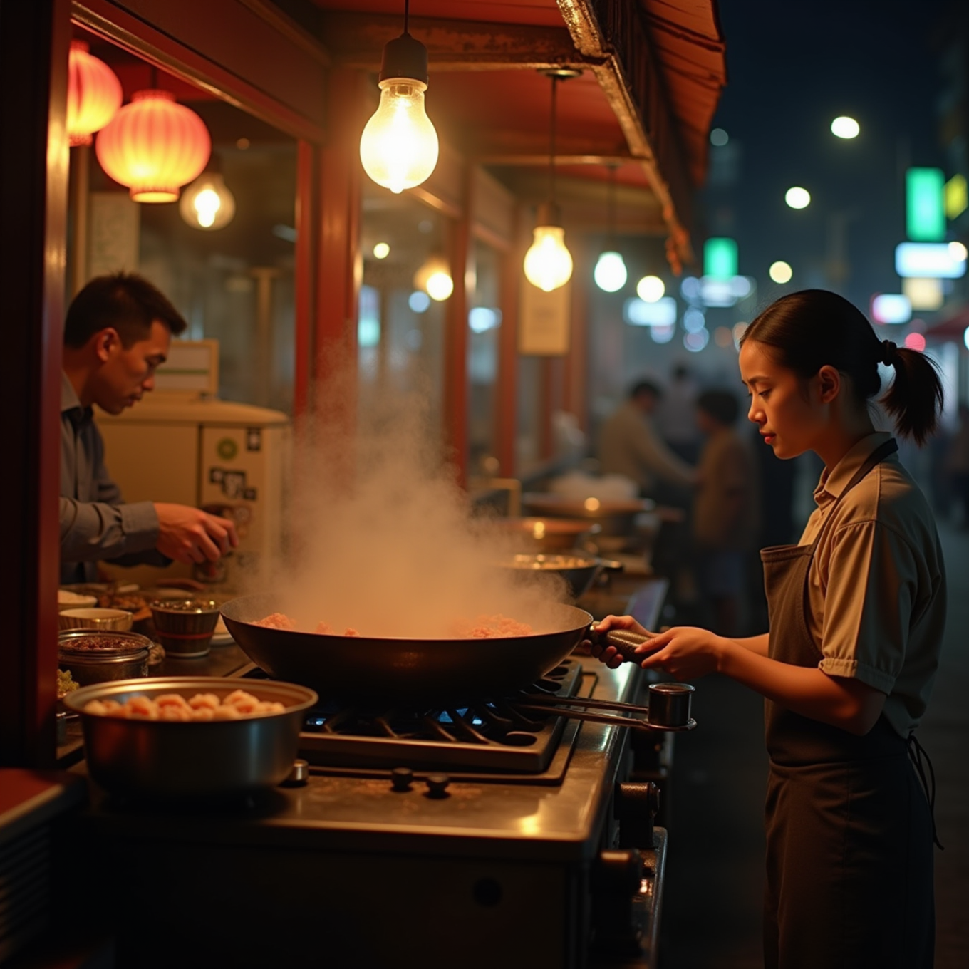 在夜摊炒菜的姑娘