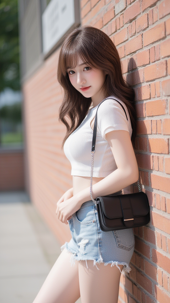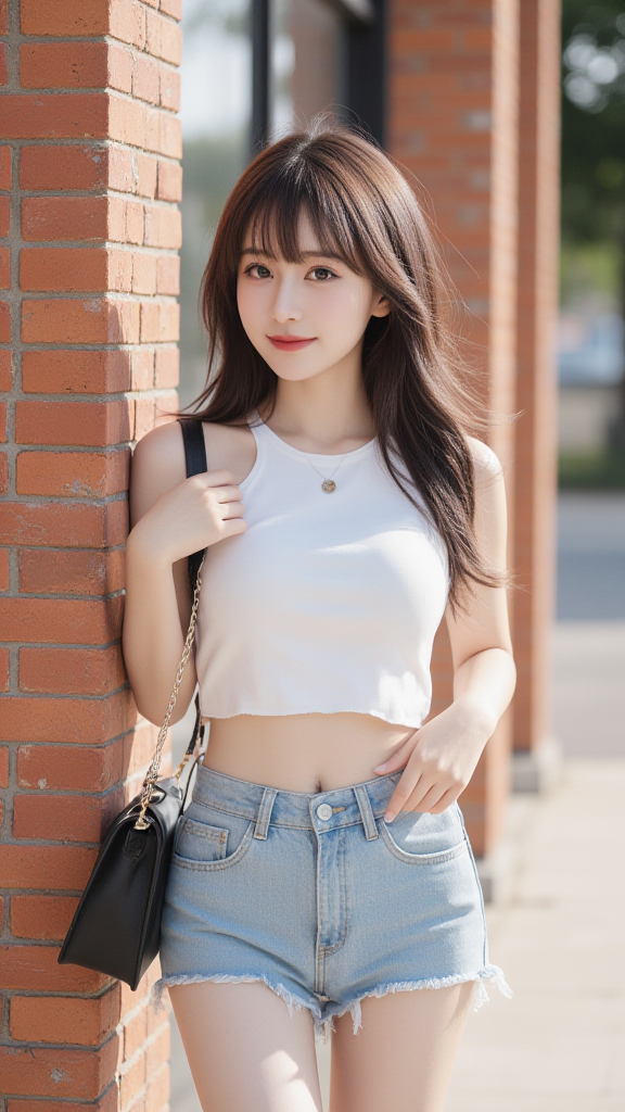 毛边牛仔短裤女孩