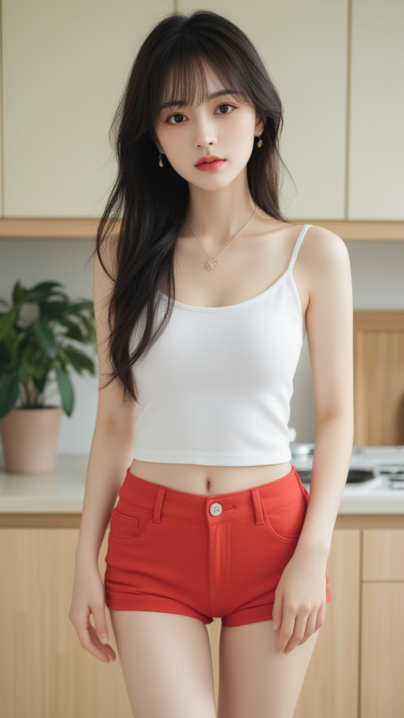 红色短裤女孩