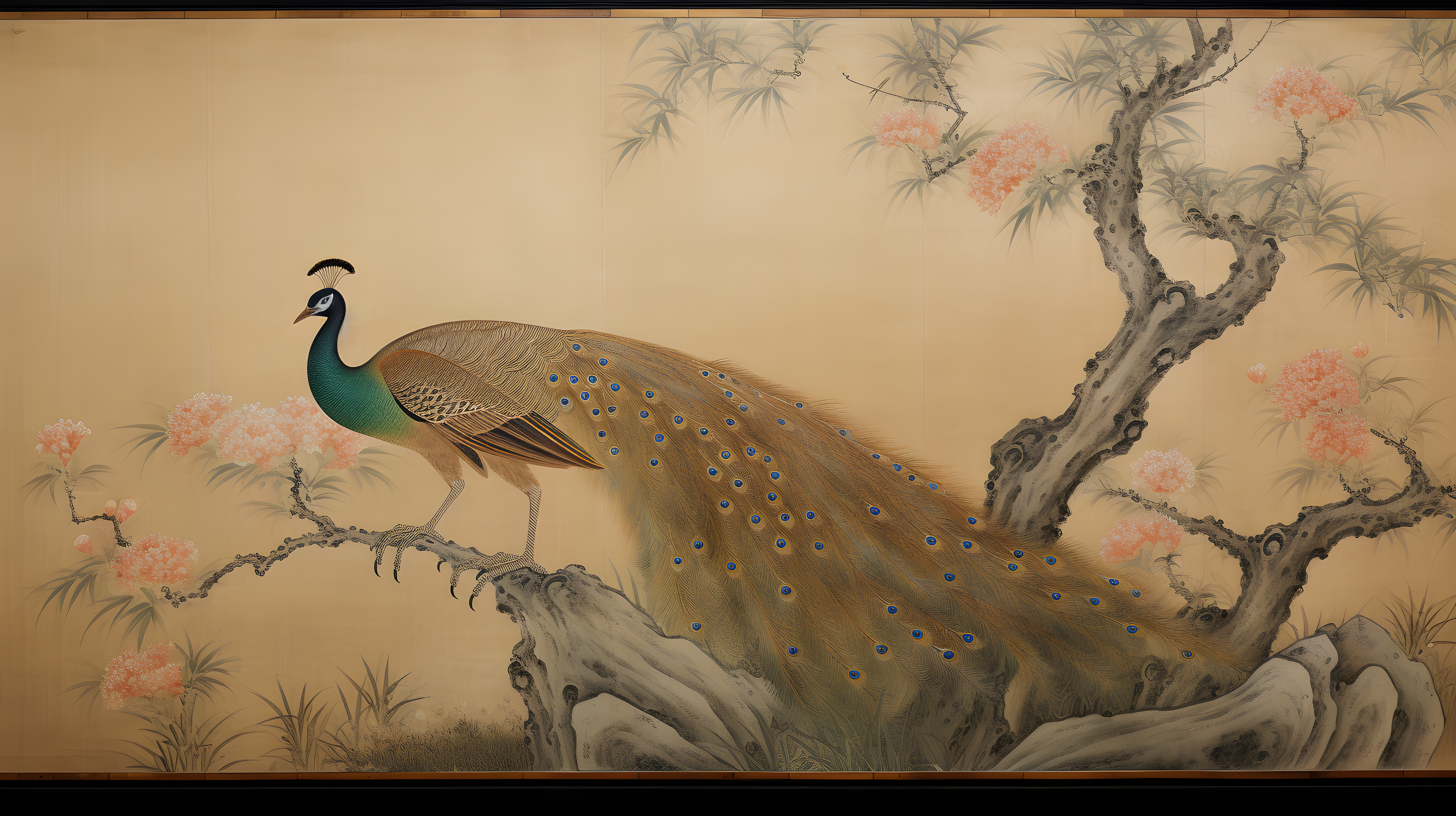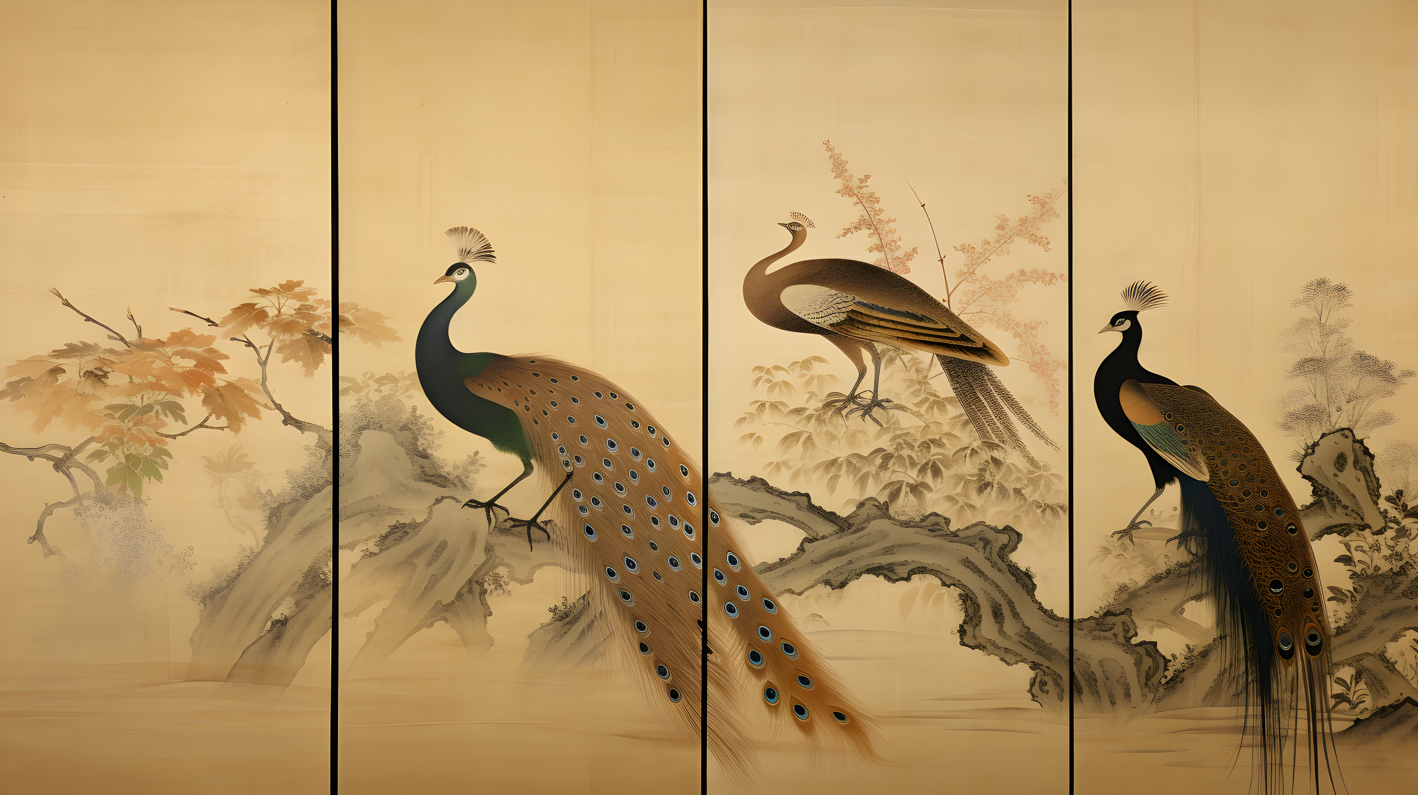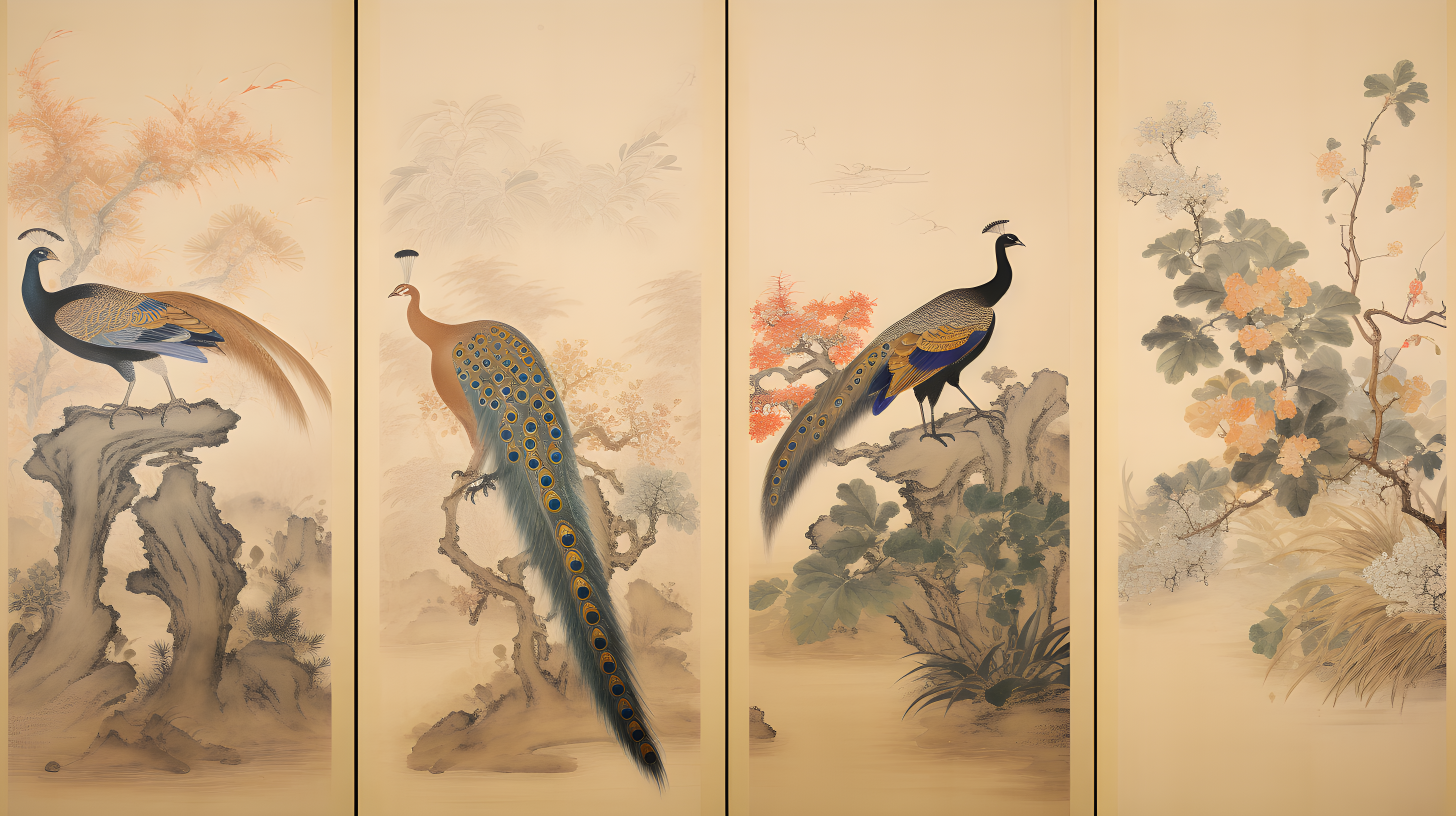 金孔雀、色彩斑斓的羽毛和修长的尾羽长尾雉、以自然主义的方式