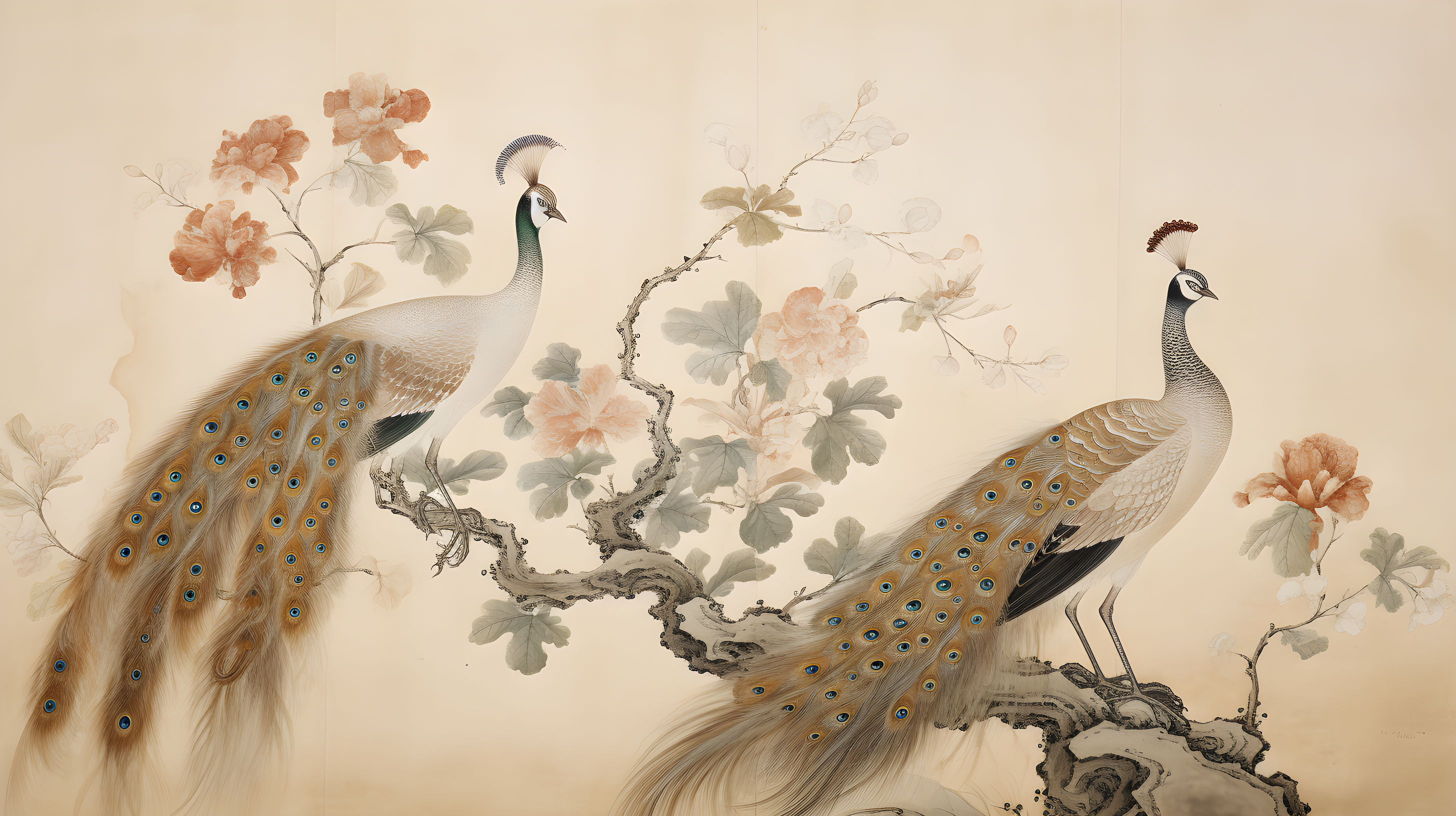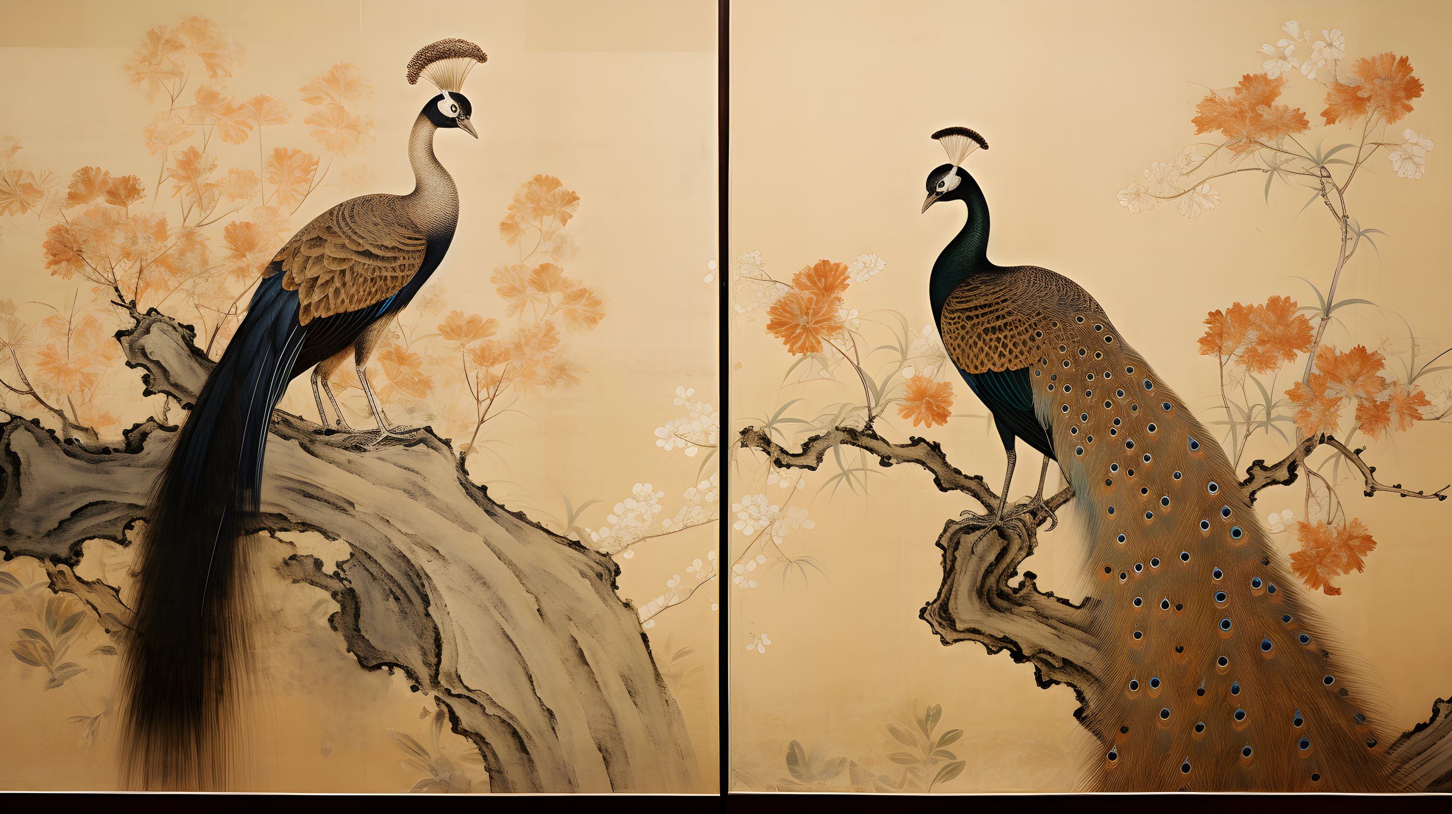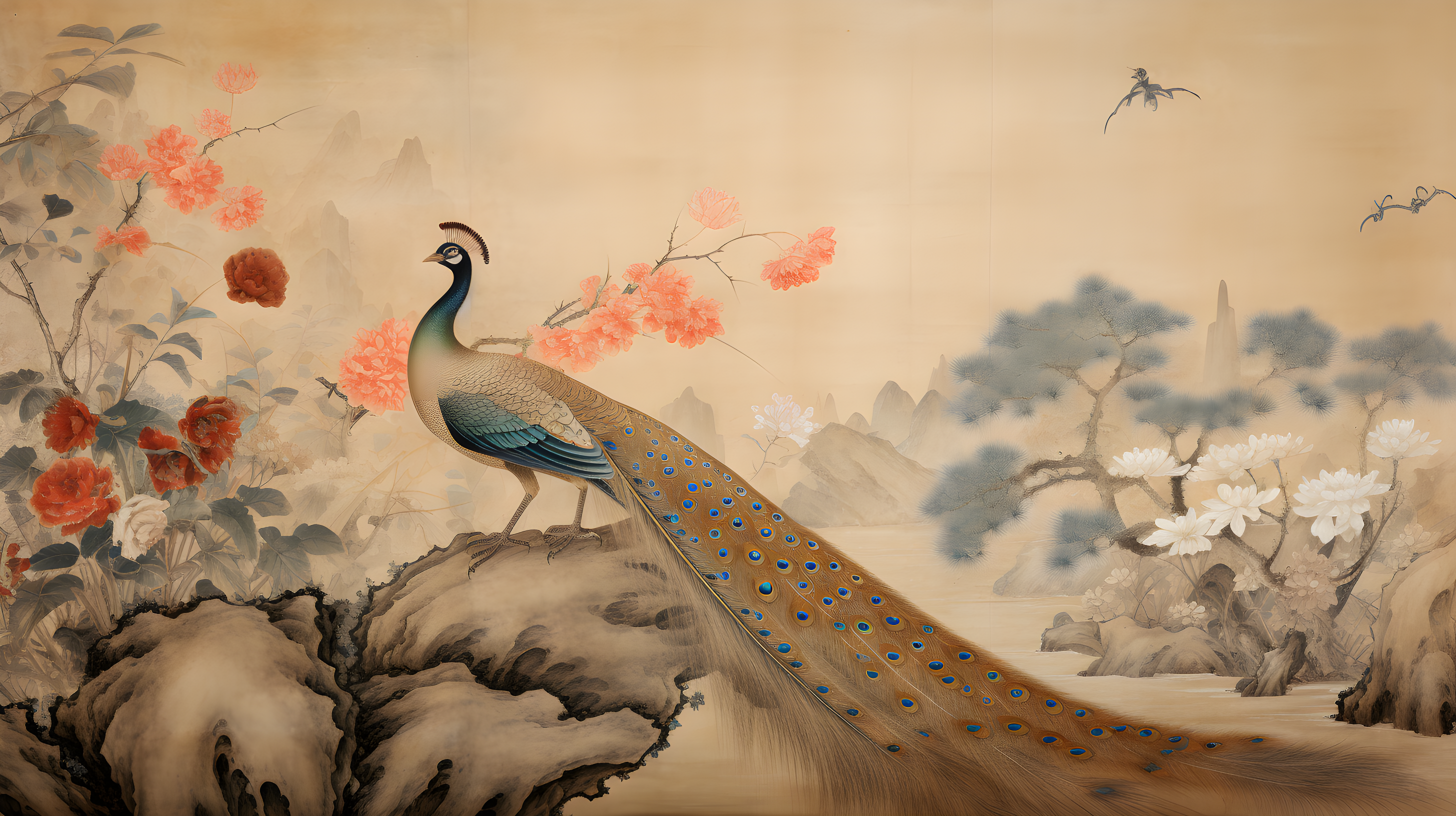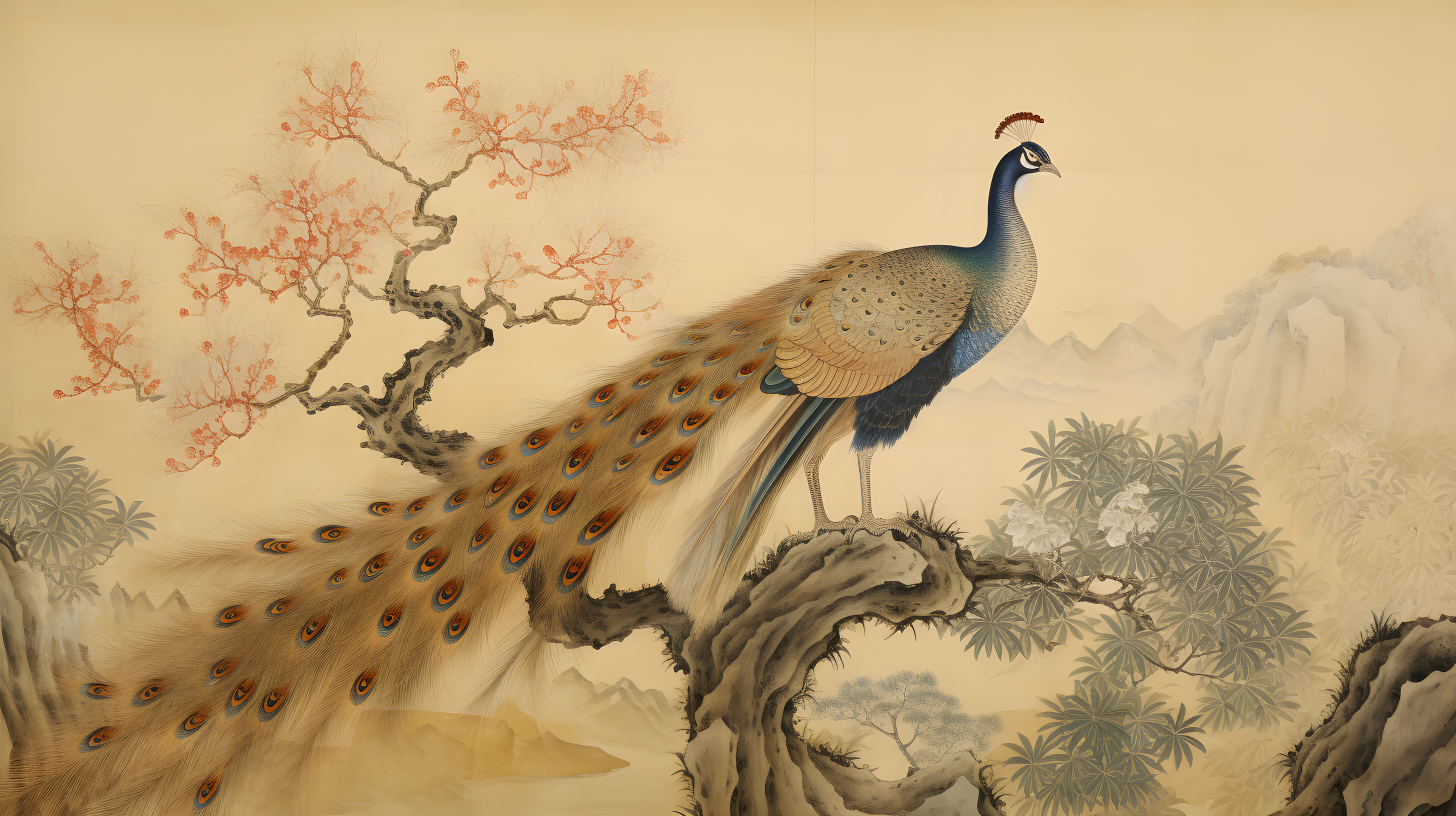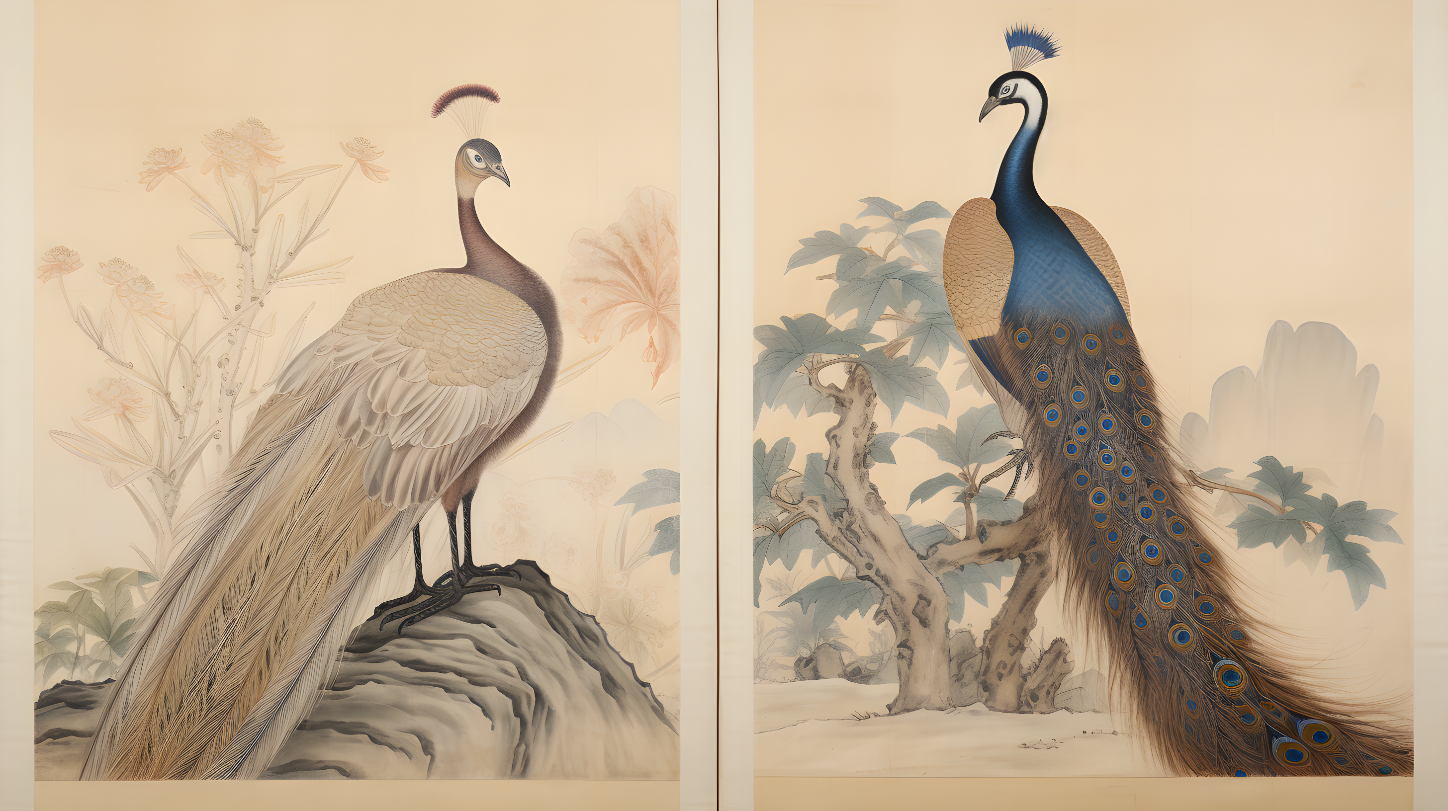 金孔雀、白冠长尾雉、以自然主义的方式
