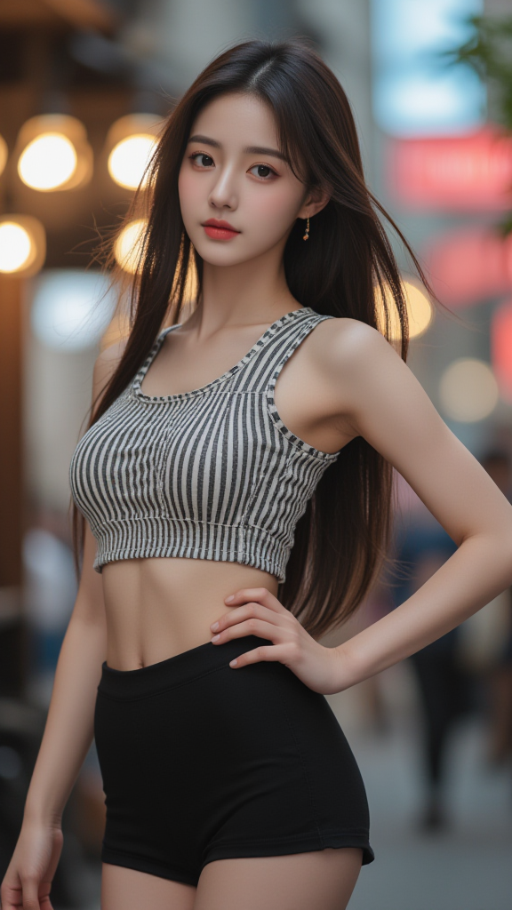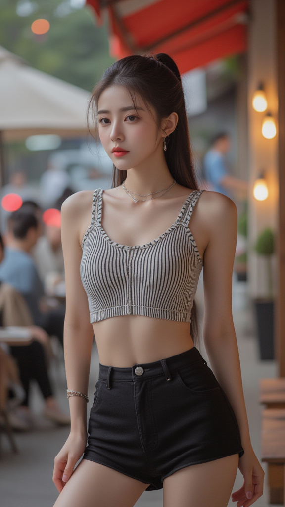 格纹背心少女