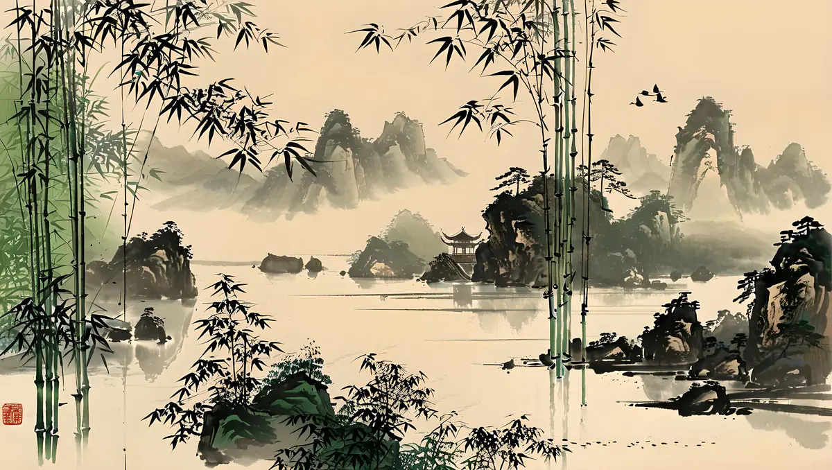 标签选择水墨画风格,水墨艺术,4k,工作室质量