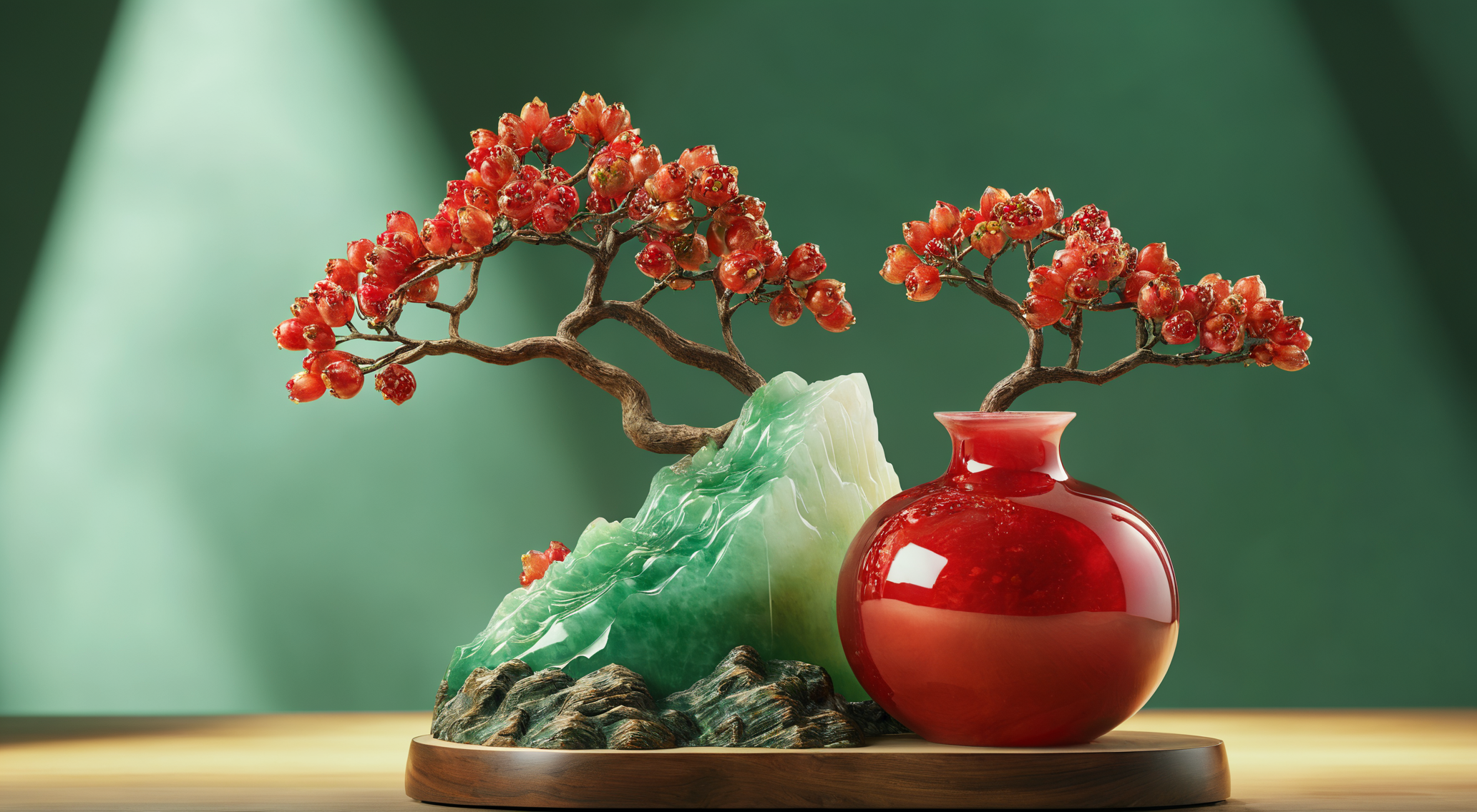 以浙江玉雕工艺和琉璃工艺设计的阿克苏石榴树,琉璃瓶