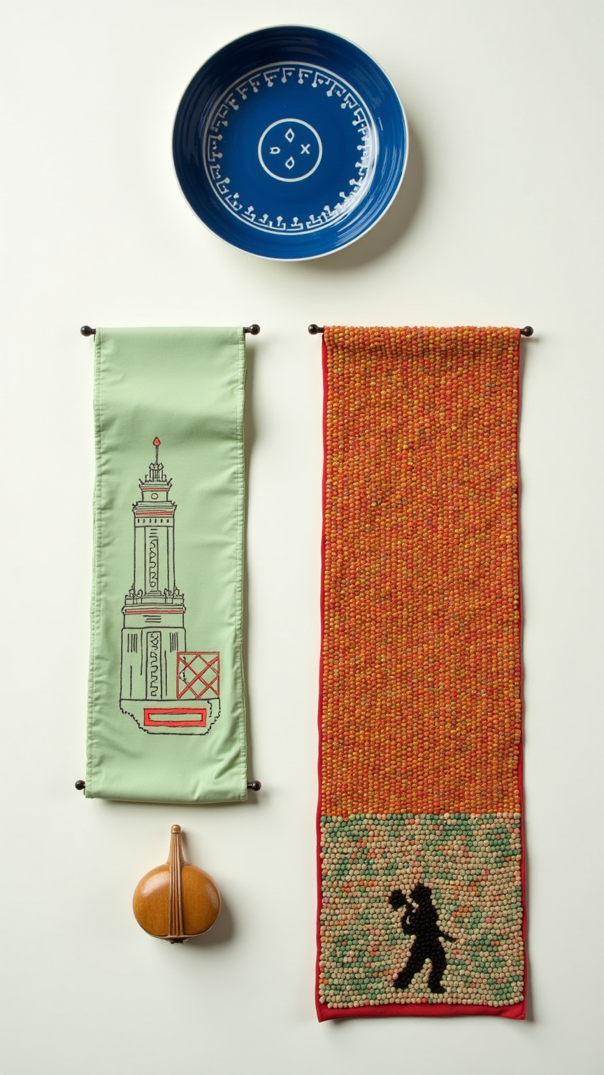 • 浙江元素:选取龙泉青瓷(哥窑开片纹理、梅子青釉色)与杭罗织造技艺(细腻经纬结构、素雅色调),前者代表浙江陶瓷非遗的典雅气韵,后者体现纺织产业的精湛工艺。