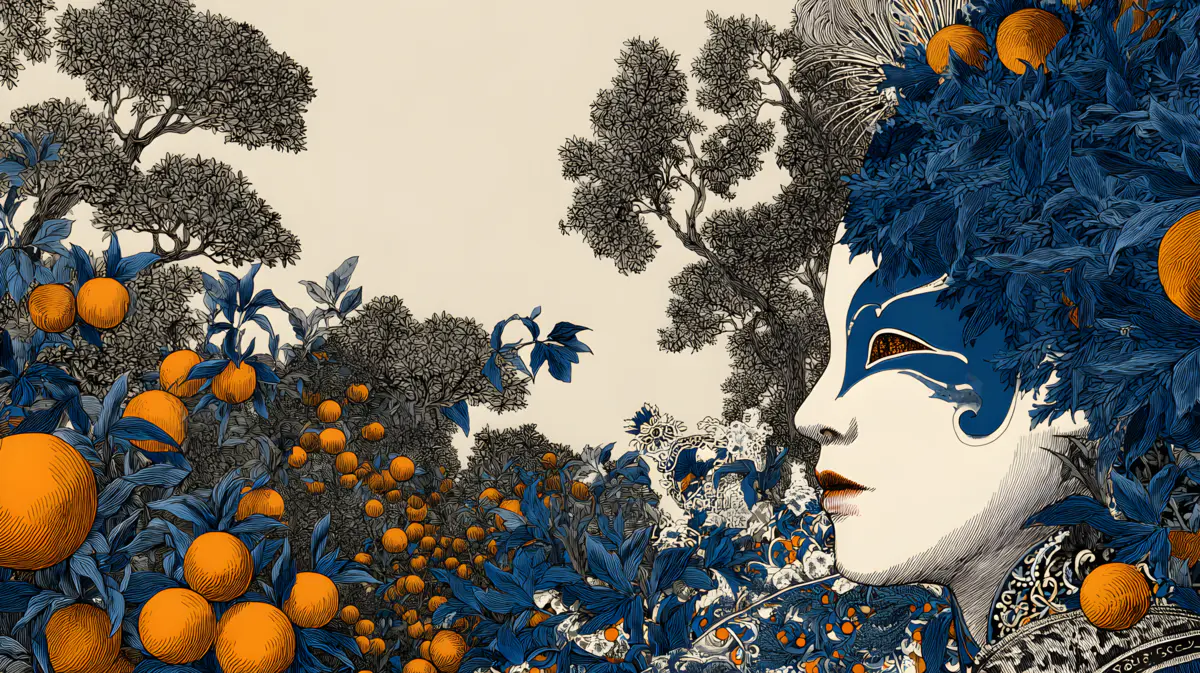 一幅跨地域文化融合的国风画卷,左侧展现浙江丝绸织机旁,绣娘以苏绣技法勾勒越剧脸谱纹样,背景衬着青瓷茶具与龙井茶园;右侧是阿克苏苹果场地,一大片阿克苏苹果。整体以水墨笔触打底,点缀西域暖橙与江南青黛,非遗纹样交织缠绕,丝绸与棉麻质感细腻,传统产业场景生动,凸显两地工艺共生的历史厚重感与美学碰撞。