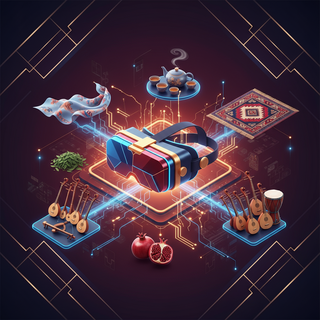 作品以VR设备为核心载体,串联浙江元素(龙井茶、丝绸)与阿克苏元素(热瓦普、地毯、石榴),借由科技感的电路与光影架构,呈现两地文化符号在数字空间的交融——既保留浙阿各自的地域标识,也通过虚拟技术实现传统物产、...查看更多