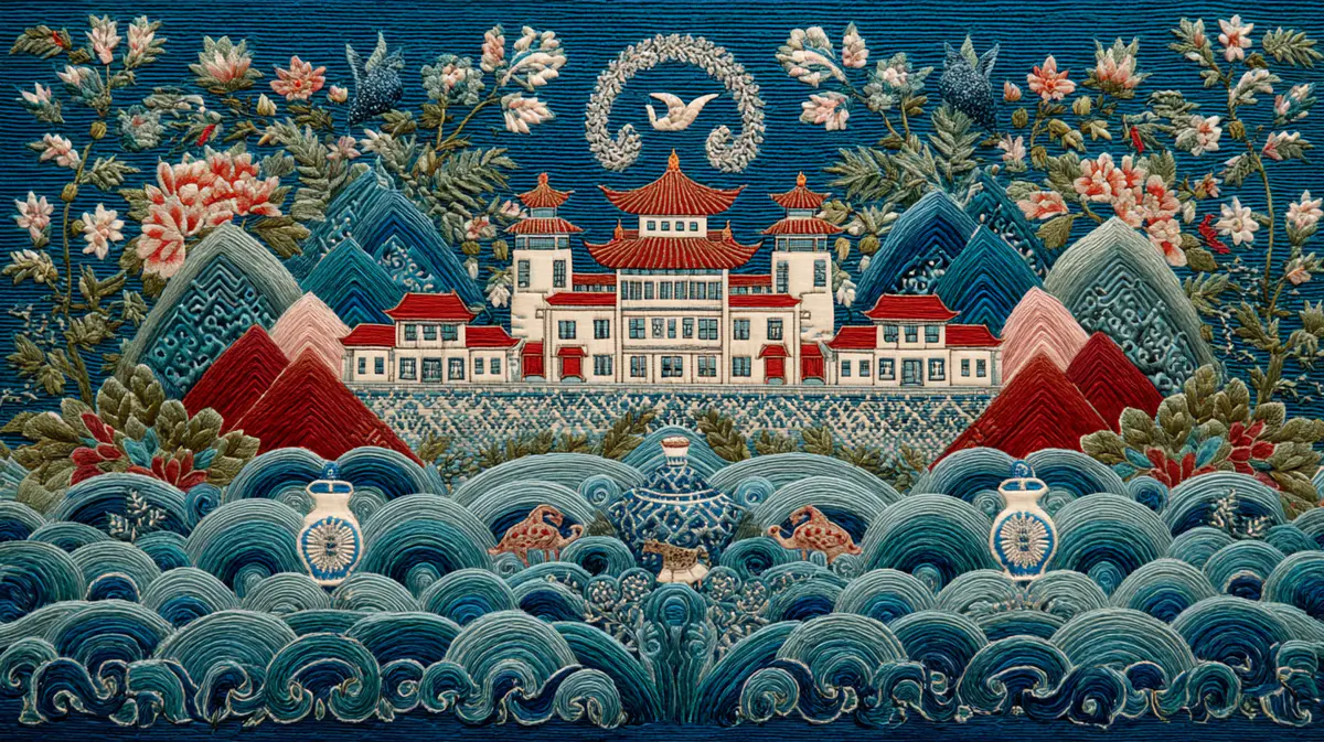 作品以“融合”为核心理念。将浙江的千年丝绸作为底布,阿克苏的棉线为经纬,柯尔克孜族的刺绣技法,绣出杭州的古建与阿克苏的山峰,棉花,精美的花卉纹样相互交融。“同宗同祖、同根同源“的浪花托举着浙阿的文化符号,点缀...查看更多